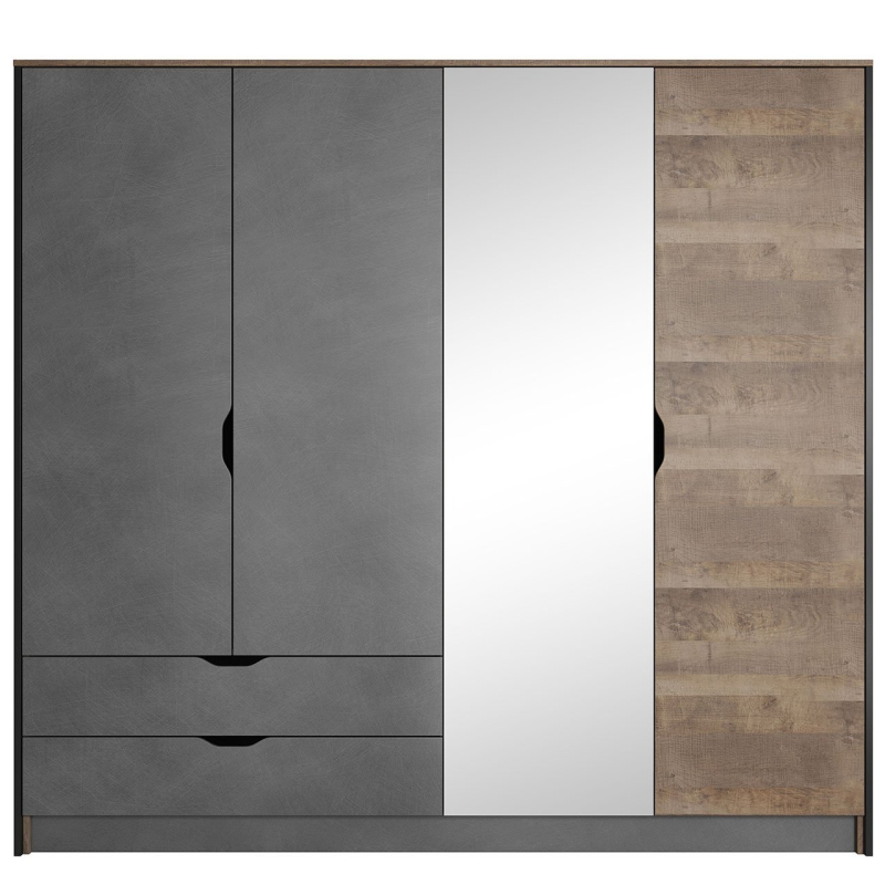 Barevné provedení předsíňové skříně je v industriálním stylu. Tmavé zbarvení dřeva v kombinaci s nepřehlédnutelnou šedou barvou působí nevšedně, od čehož je těžké odtrhnout oči. Praktickým doplňkem je zrcadlo na přední straně, díky němuž můžete snadno a rychle doplnit svůj outfit na vycházku tím, že se prohlédnete v jeho odrazu.