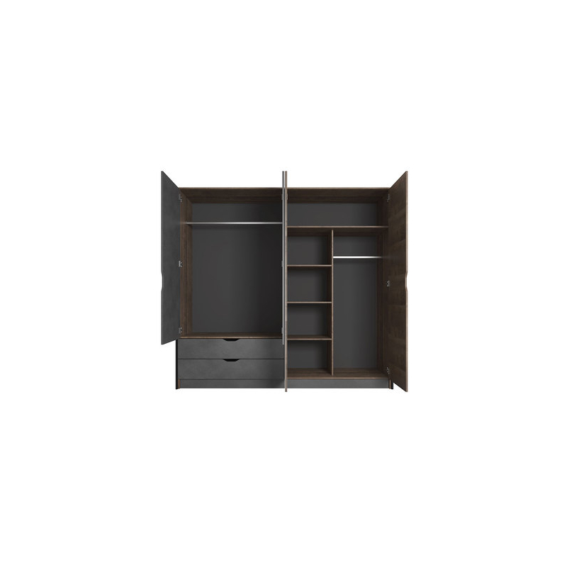 Uspořádejte si prostor ve své domácnosti pomocí šatní skříně Trafore 220 F. Její interiér skrývá důmyslnou kombinaci polic, závěsných tyčí na oblečení a prostorných zásuvek, které zvyšují funkčnost nábytku.