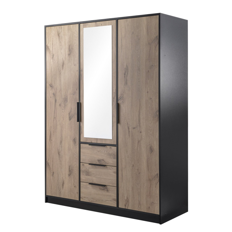 Moderní způsob skladování najdete uvnitř šatní skříně Pangaz D3 se zásuvkami. Chytře uspořádaný prostor byl navržen tak, aby vám poskytl maximální prostor pro oblečení, boty a doplňky. Nábytek, který nabízí četné police, tyče na zavěšení věšáků a šuplíky, dobře poslouží v šatně, předsíni i obývacím pokoji.