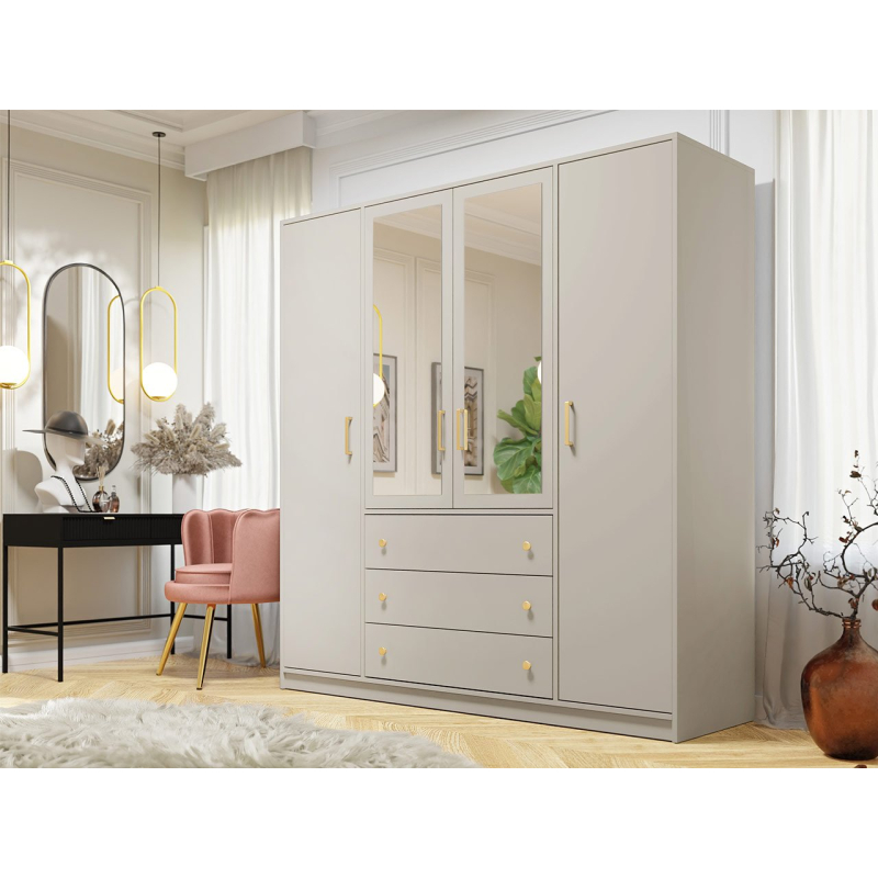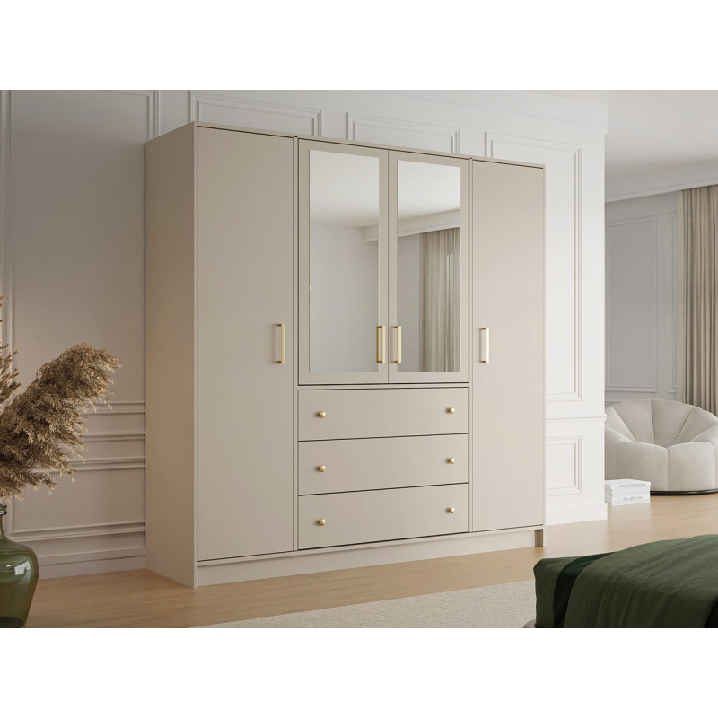 Dobře organizovaný úložný prostor má cenu zlata. Šatní skříň Senila Lux D4 se zrcadlem se skvěle hodí jako místo pro oblečení, spodní prádlo a další doplňky. Prostorný interiér s šatní tyčí, šikovnými zásuvkami a praktickými policemi vám umožní uspořádat si okolí.