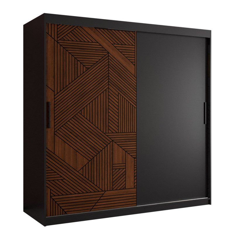 Díky moderní šatní skříni Montik I 180 se skladování oblečení stane jednoduchým a efektivním. Jeho přední strany jsou pokryty geometrickým vzorem, který zaujme a přitahuje pohledy. Na plochu se nanášel tiskem. Tento dekor je způsob, jak z nábytku udělat nejen praktický prvek, ale i ozdobu vašeho interiéru.