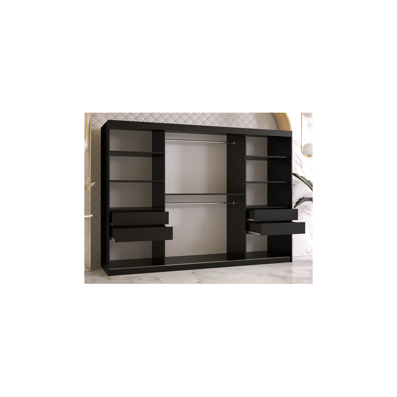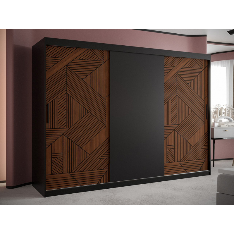 Úložný prostor je v každém bytě nesmírně důležitý. Pro tento úkol se doporučuje moderní šatní skříň Montik I 250. Její prostorný interiér pojme veškeré oblečení a doplňky. Dobrá organizace vám umožní roztřídit halenky, kalhoty a další doplňky. Uvnitř skříně najdete také dvě šatní tyče, které vám umožní pověsit šaty, košile nebo bundy. Další výhodou tohoto modelu jsou posuvné dveře. Kromě mimořádné funkčnosti vyniká varianta také krásným vzhledem. Zajímavý vzor na dveřích dokonale zvýrazní celek a dodává mimořádně dekorativní charakter.