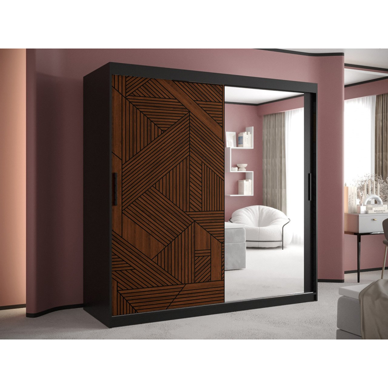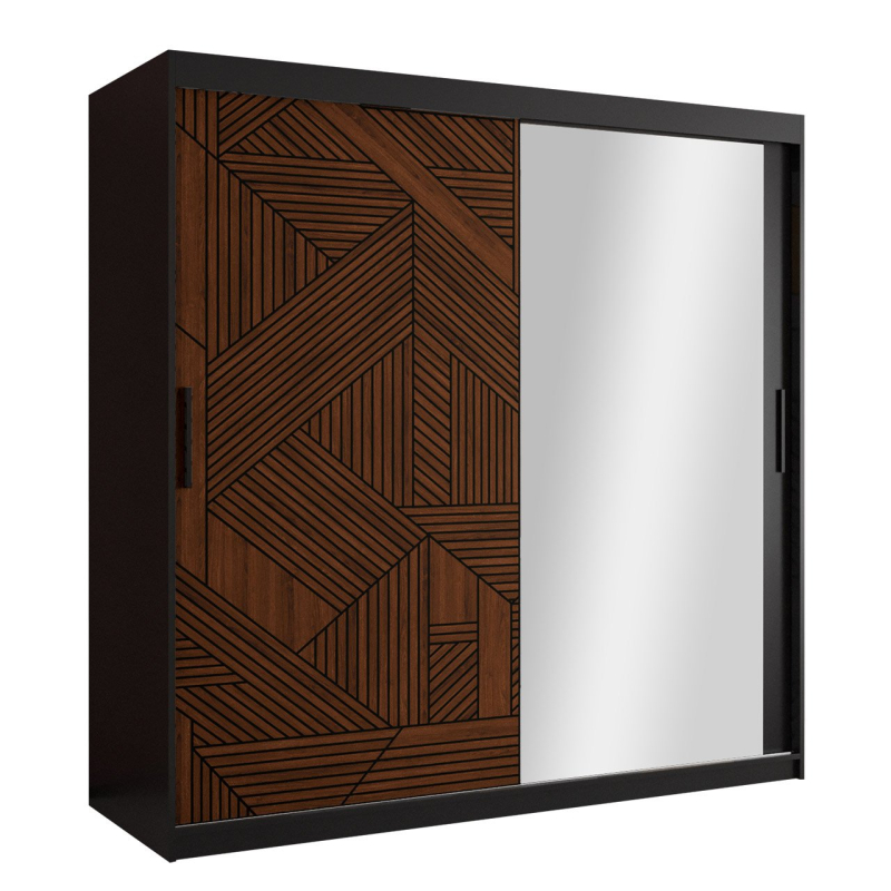Moderní šatní skříň Montik II 180 je perfektní volbou do ložnice nebo předsíně. Kombinace stylu a funkčnosti se uplatní v mnoha aranžmá. Zajímavá vizuální vrstva dodá charakter každému interiéru. Originální vzory na předních stranách v kombinaci se zrcadlem vytvářejí zajímavou kombinaci, která okouzlí nejednoho uživatele. Interiér šatní skříně s posuvnými dveřmi nabízí mnohé. Najdete tam šikovné police a dvě šatní tyče. Za příplatek si můžete pořídit i čtyři šuplíky.