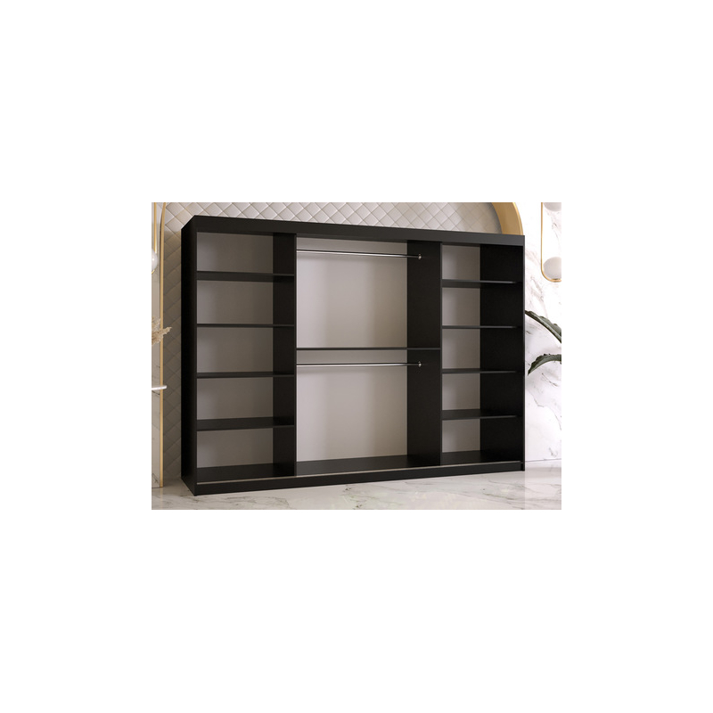 Šatní skříň do ložnice Montik II 250 je perfektní způsob, jak udržet pokoj v čistotě a pořádku. Skvěle poslouží i v šatně nebo větší předsíni. Nabízí velkou úložnou plochu. Ideální pro páry.