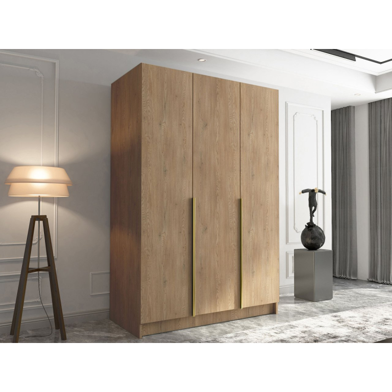 Moderní 3dveřová šatní skříň Mirpat I je návrhem pro vybavení obývacího pokoje, předsíně a rodinné skříně. Přehledný vnitřek nábytku nabízí dostatek úložného prostoru. Připravili jsme police na oblečení složené do kostek a také tyč na zavěšení ramínek. Takový prostor předvídá měnící se potřeby úložiště v průběhu času.