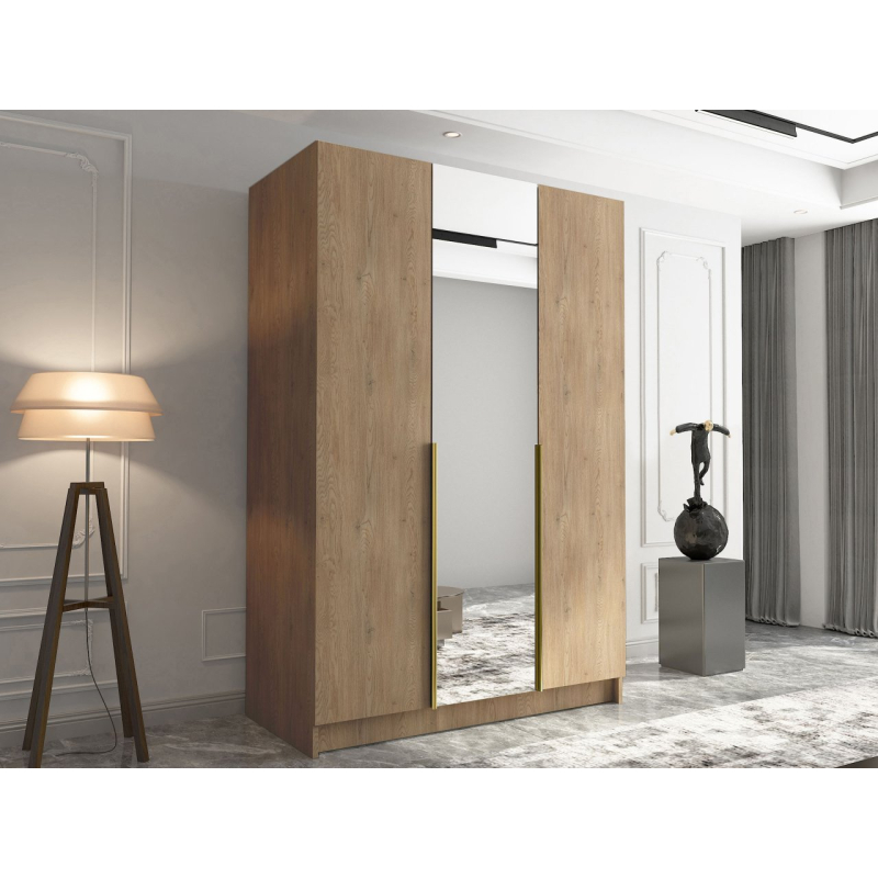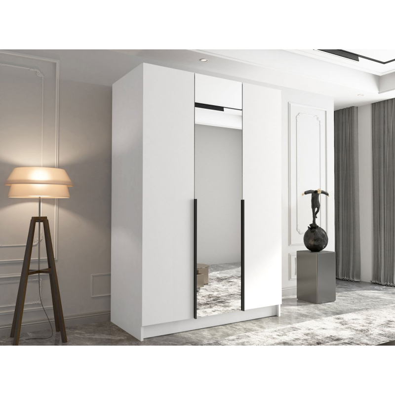 Vnitřek šatní skříně se zrcadlem má řadu polic a šatní tyč. Umožňuje uschovat nejrůznější oděvní předměty – od běžného oblečení, přes elegantní outfity, až po boty a doplňky. Šatní skříň o šířce 150 cm poskytuje maximální kapacitu při zachování kompaktních rozměrů.
