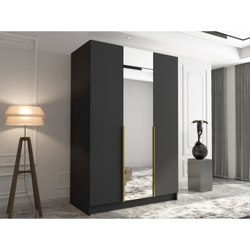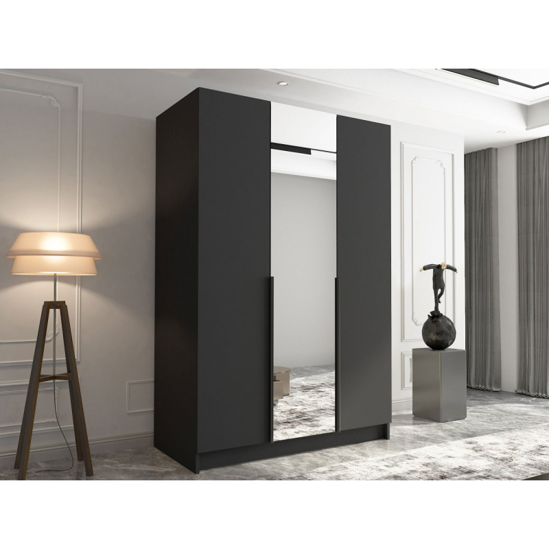 Moderní šatní skříň Mirpat II dobře poslouží v ložnici, šatně nebo předsíni. Tento model byl navržen s důrazem na funkčnost. Nabízí praktické úložné řešení a zároveň zkrášluje interiér.
