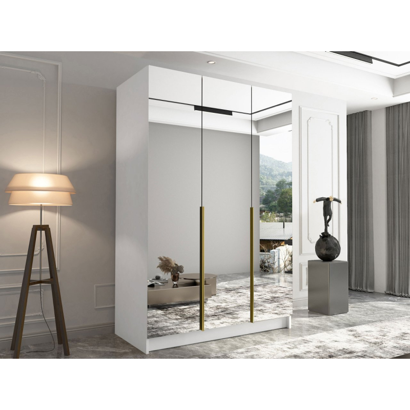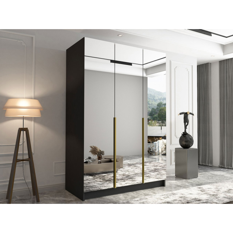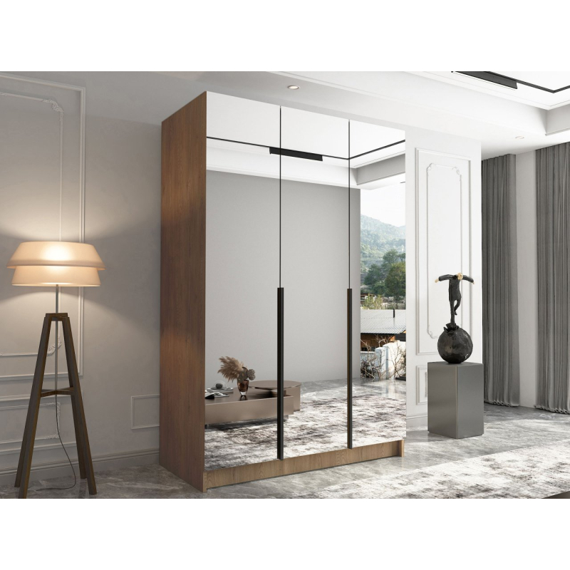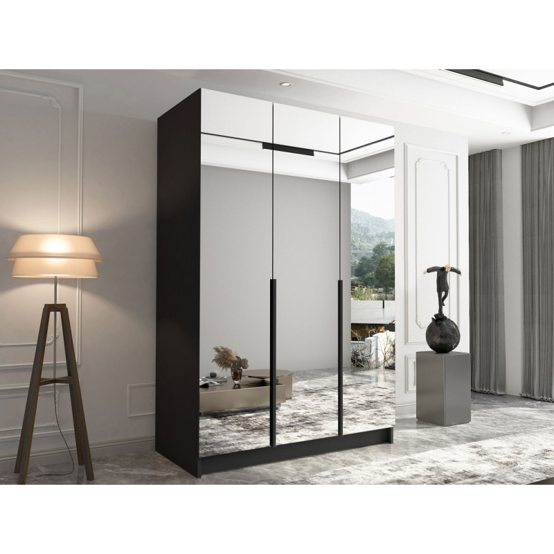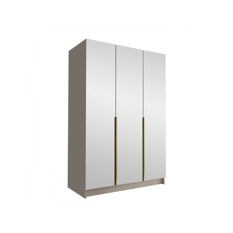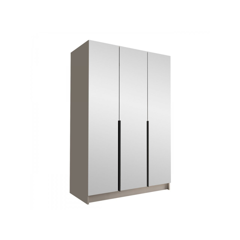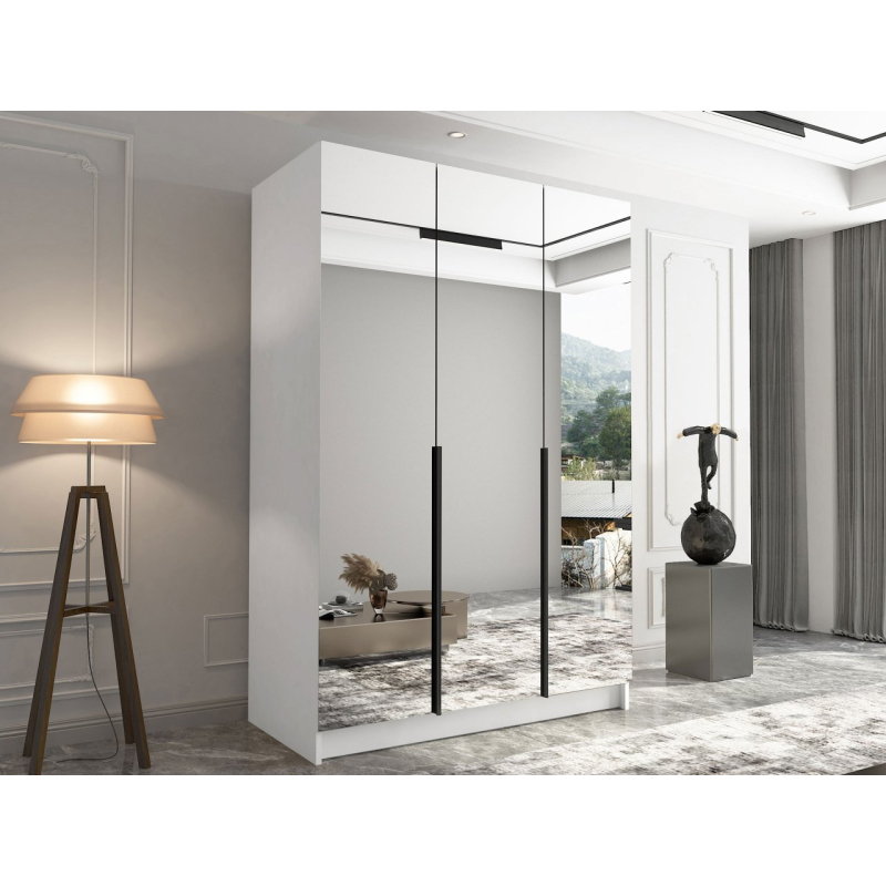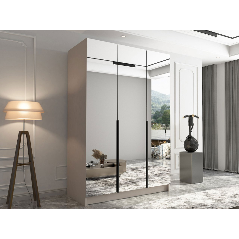 Velká skříň Mirpat III se zrcadlem je ideální do ložnic, šatníků a síní. Zaujme svým moderním designem. Pozornost upoutá obrovské zrcadlo na dveřích. Celý kus je zdoben elegantními, prodlouženými úchyty. Tento design rozzáří místnost a opticky ji zvětší.