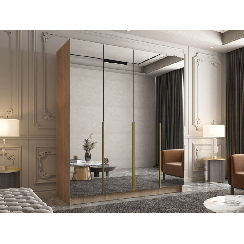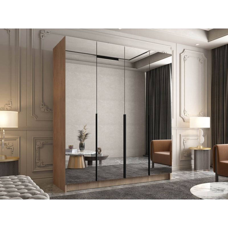 Čtyřdveřová šatní skříň Sozilo nabízí dostatek úložného prostoru. Je vybavena řadou polic, které vám umožní uspořádat oblečení, obuv a další doplňky. Kromě toho má také praktickou tyč, která je ideální pro odkládání šatů, košil a obleků.