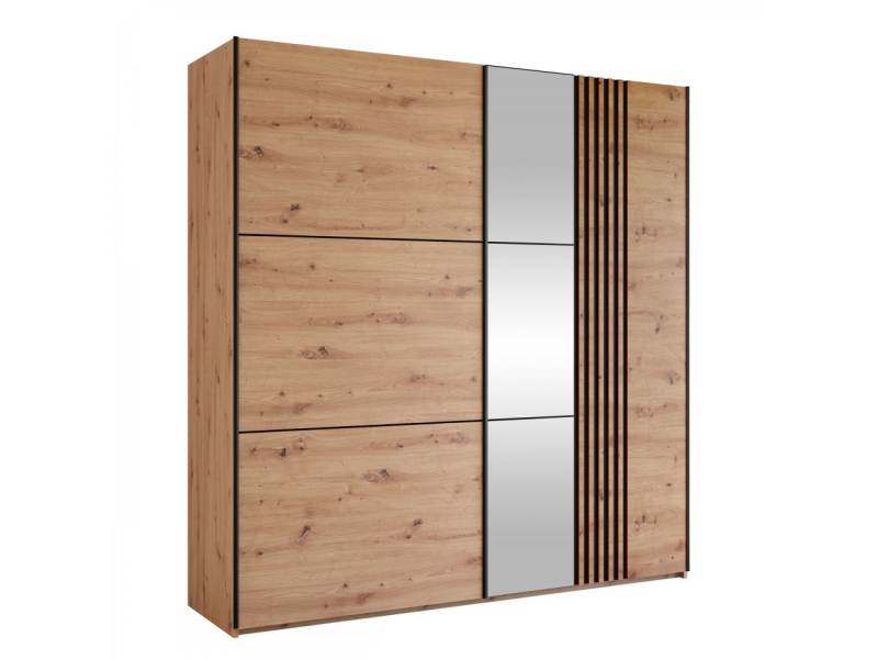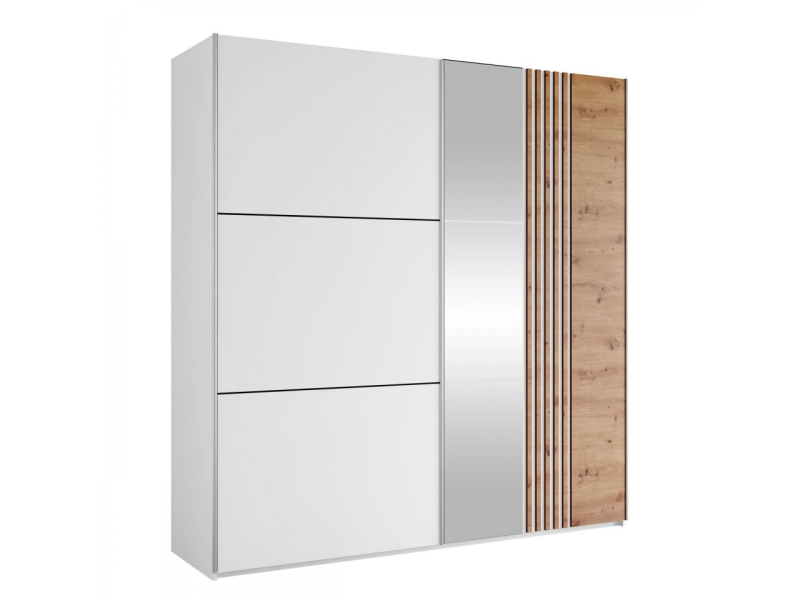 Dekorativní charakter posuvné skříně Tojwi 203 je lahůdkou pro milovníky stylového nábytku. Díky chytré kombinaci módních barev se zrcadlem a lamelovou vložkou vypadá výjimečně. Skříň, která je skutečným příkladem dobrého designu, se bezproblémově hodí do každého zařízení obývacího pokoje a dokonale doplní výzdobu chodby, šatníku nebo dokonce ložnice.