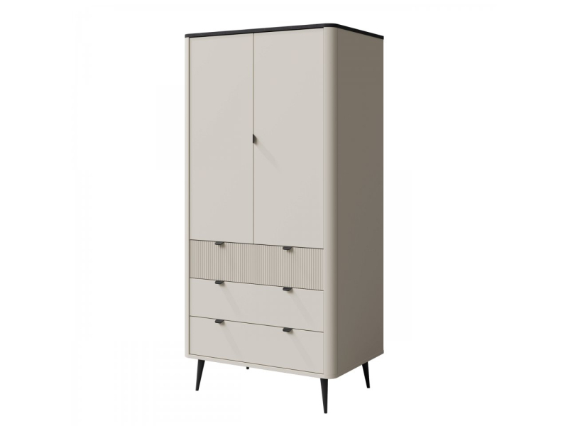 Podstata moderního stylu. Šatník Rotevio 3S2D RT01 dokonale odráží nejnovější trendy v interiérovém designu. Jeho charakteristickým prvkem jsou zaoblené boky, které doplňují mnohé interiéry a dodávají nádech stylu a lehkosti. Kus se také vyznačuje jemným doplňkem: drážkovanou přední částí jedné ze zásuvek.