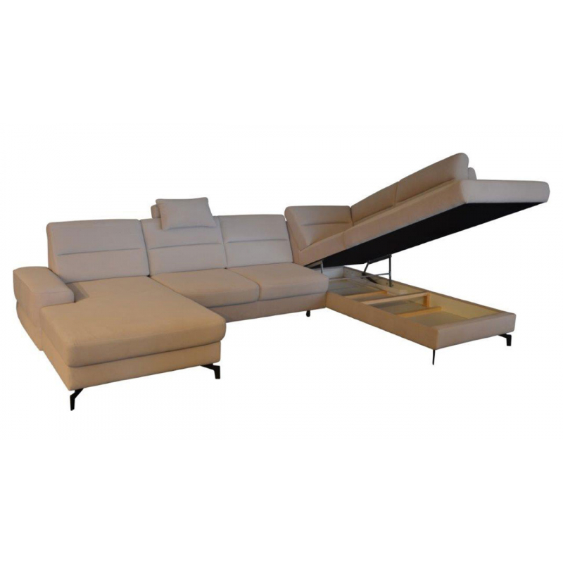 Rohová pohovka v Pomořansku je vybavena prostorným kontejnerem na ložní prádlo a funkcí spaní, která umožní pohodlný odpočinek i pro několik lidí.