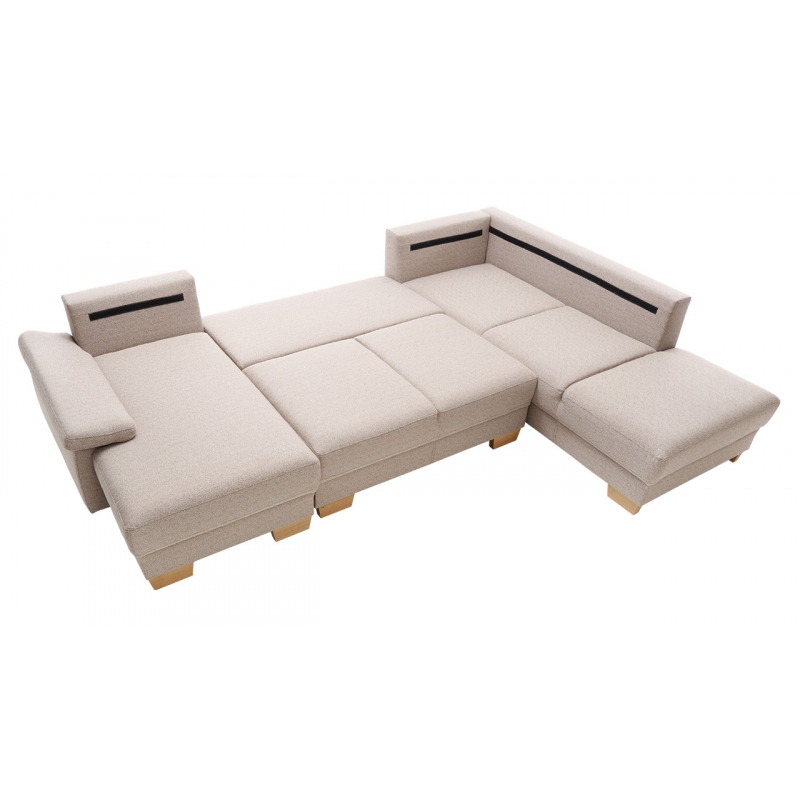 Jemné barvy znamenají, že rohová sedací souprava s funkcí spaní Lex příznivě zahřívá interiér obývacího pokoje a dodává tónu přirozenosti. Nastavitelné loketní opěrky lze snadno nastavit do nejpohodlnější polohy a pěnové polstrování rohového sedadla pozitivně ovlivní umístění jednotlivých sekcí páteře a poskytne vám zdravé a pohodlné podmínky pro každodenní odpočinek.