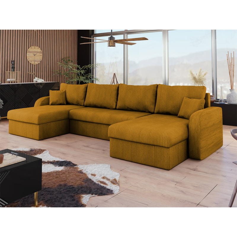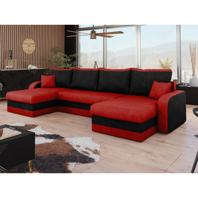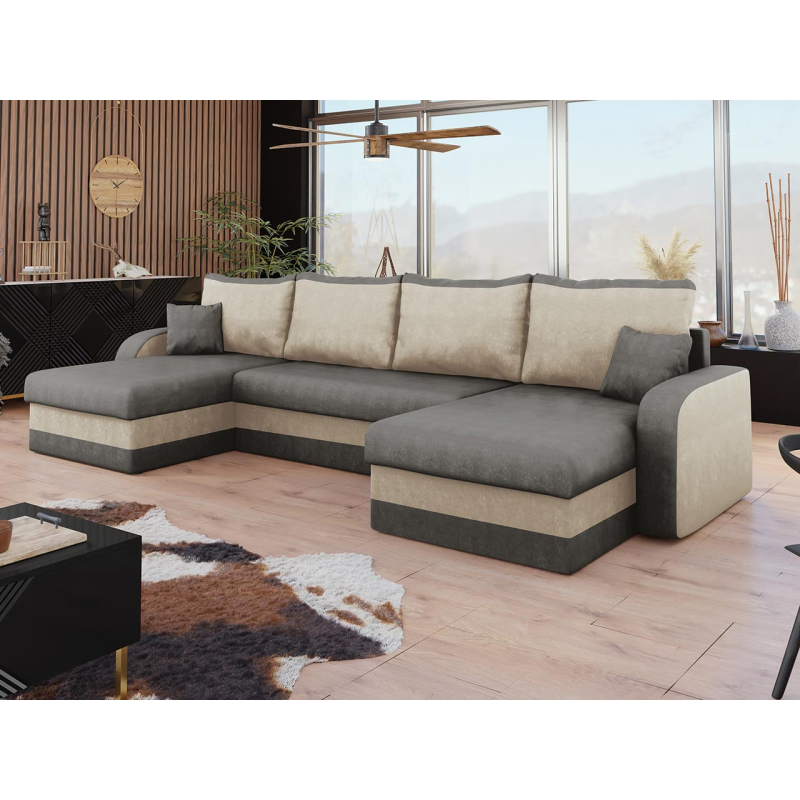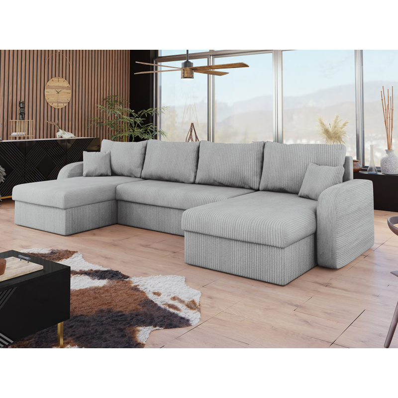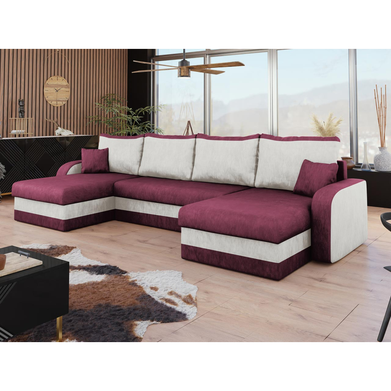 Rohová rozkládací pohovka Dalmir do U je pohodlný kus nábytku, který je k dispozici v mnoha módních variantách potahových látek. Tvar písmene "U" poskytuje optimální množství prostoru tak pro členy velmi velké rodiny, jakož i pro hosty, kteří vás navštěvují při kávě. Dalmir se perfektně hodí do interiéru obývacího pokoje, jejíž základ tvoří moderní konferenční stolek.