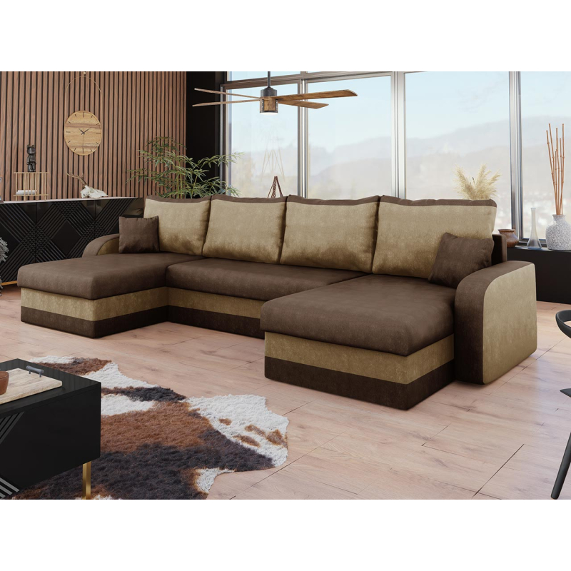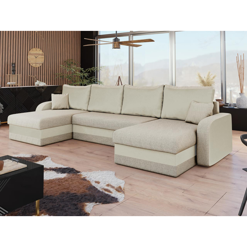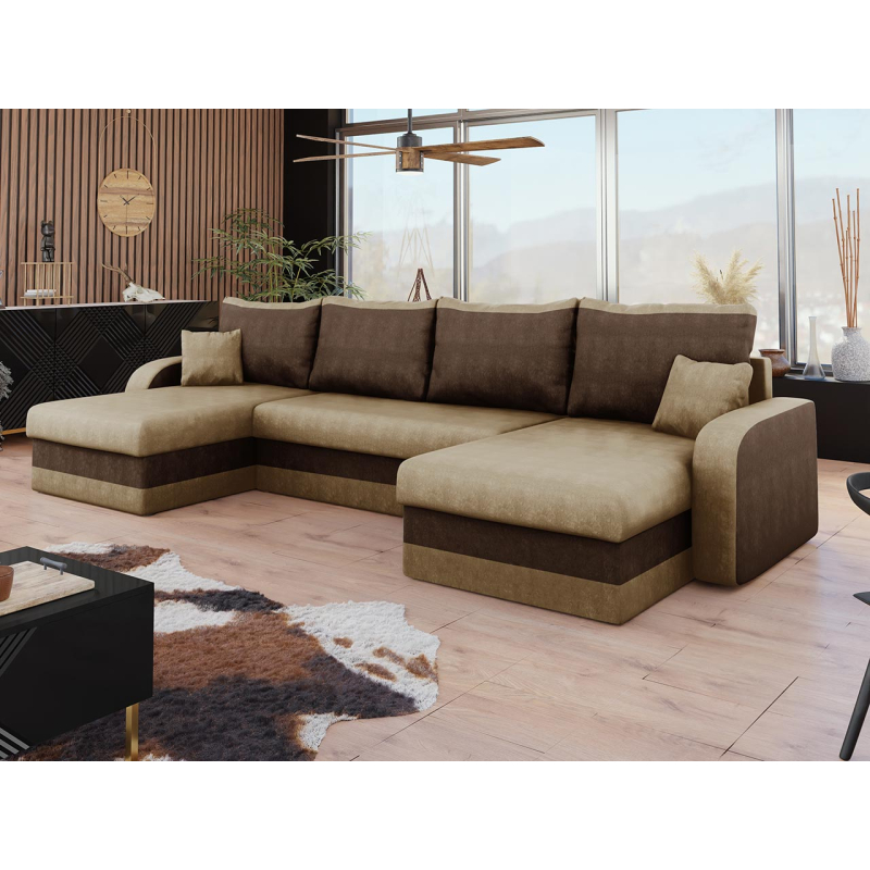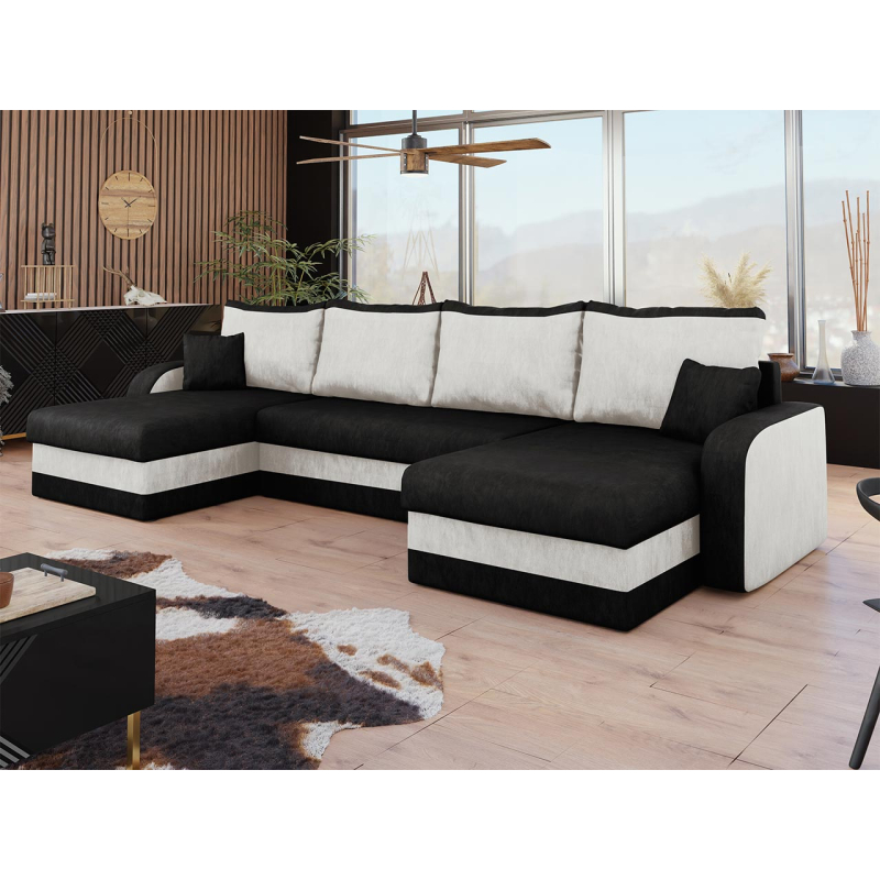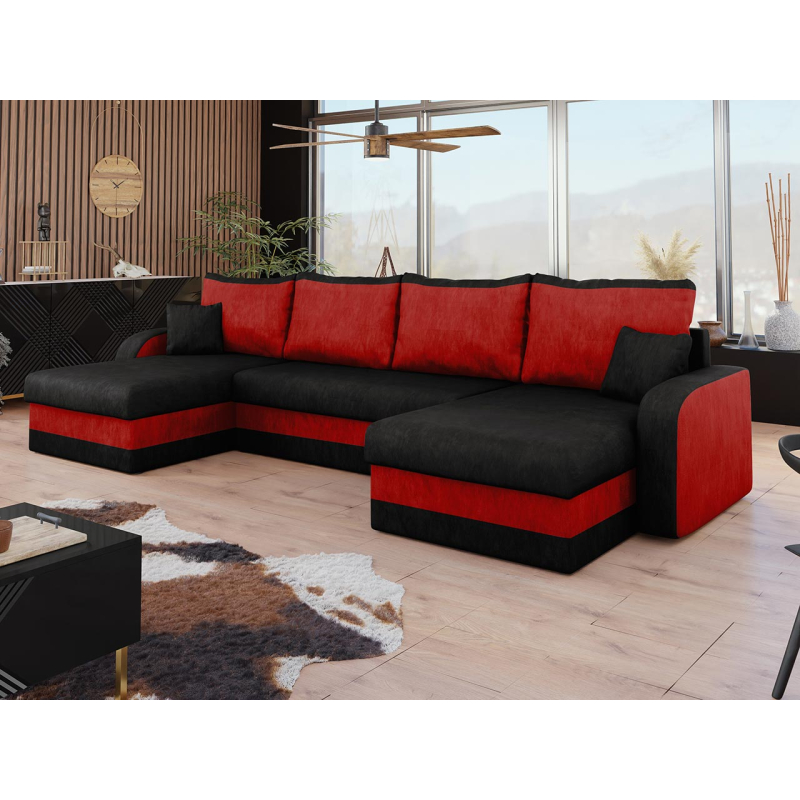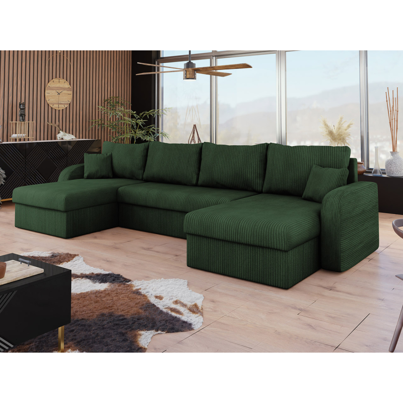 Rohová rozkládací pohovka Dalmir do U je pohodlný kus nábytku, který je k dispozici v mnoha módních variantách potahových látek. Tvar písmene "U" poskytuje optimální množství prostoru tak pro členy velmi velké rodiny, jakož i pro hosty, kteří vás navštěvují při kávě. Dalmir se perfektně hodí do interiéru obývacího pokoje, jejíž základ tvoří moderní konferenční stolek.