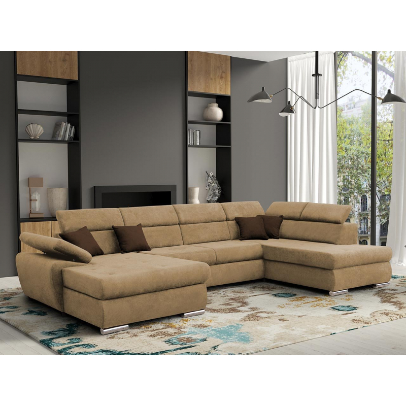 Rohová rozkládací pohovka Pece byla vytvořena s důrazem na každý, i sebemenší detail. Tento nábytek ve tvaru písmene U se skvěle hodí do moderního interiéru. Zadní strana nábytku je potažena látkou, takže jej lze umístit kdekoli. Vysoký komfort používání zvyšují nastavitelné opěrky hlavy a loktů.