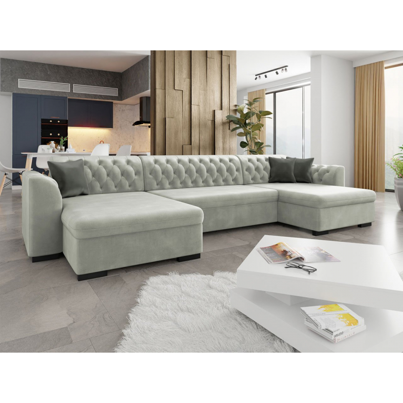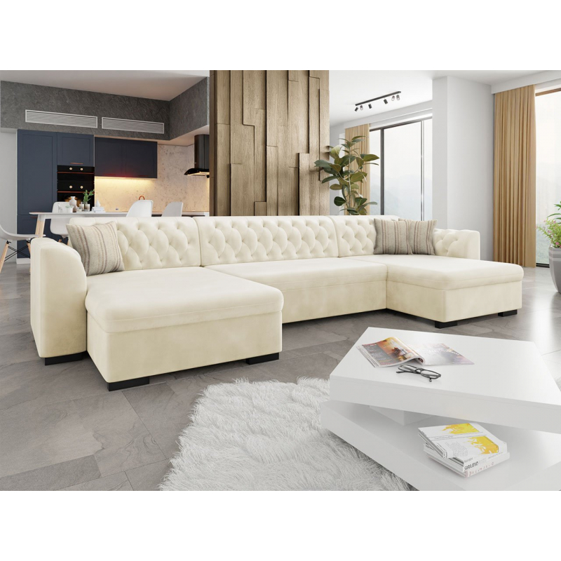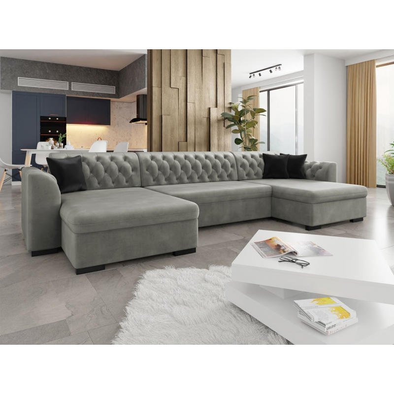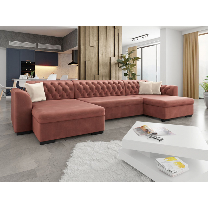 Stvořeno pro radost. Sedák je velmi měkký a pohodlný, což se promítá do kvality odpočinku. Jedná se o rozkladací sedací soupravu typu U. Souprava má polštářky, které se zapínají na zip. Čalouněná zádová opěrka je pevná trvale. Model má také černé plastové nohy.
