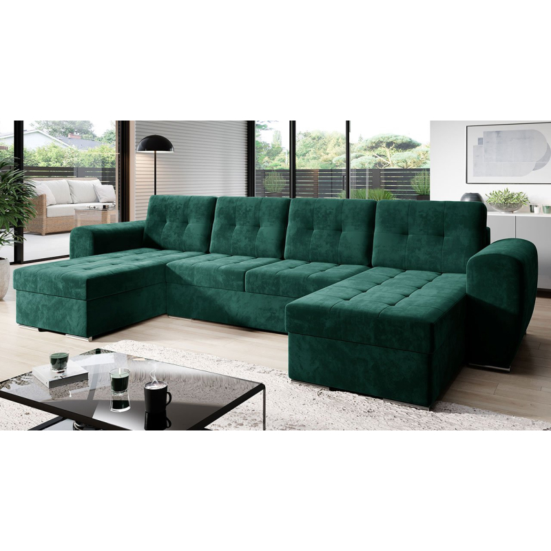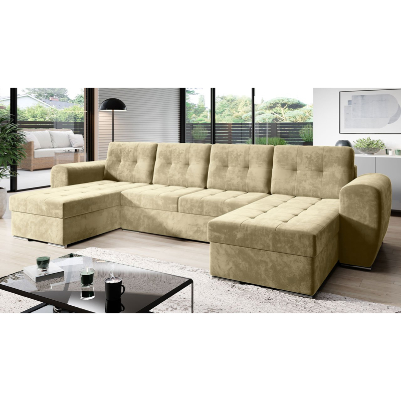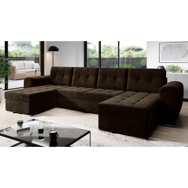 Velká rohová rozkládací sedací souprava Darilko U je rájem pro rodinnou relaxaci. Každé prošívané sedadlo poskytuje pohodlné podmínky pro sledování filmů, čtení knih a dlouhé rozhovory s šálkem kávy v ruce. Přidáním konferenčního stolku k sedací soupravě zorganizujete pohodlný prostor pro každodenní odpočinek.