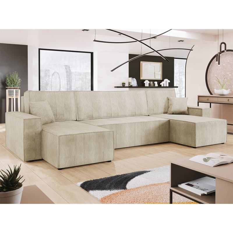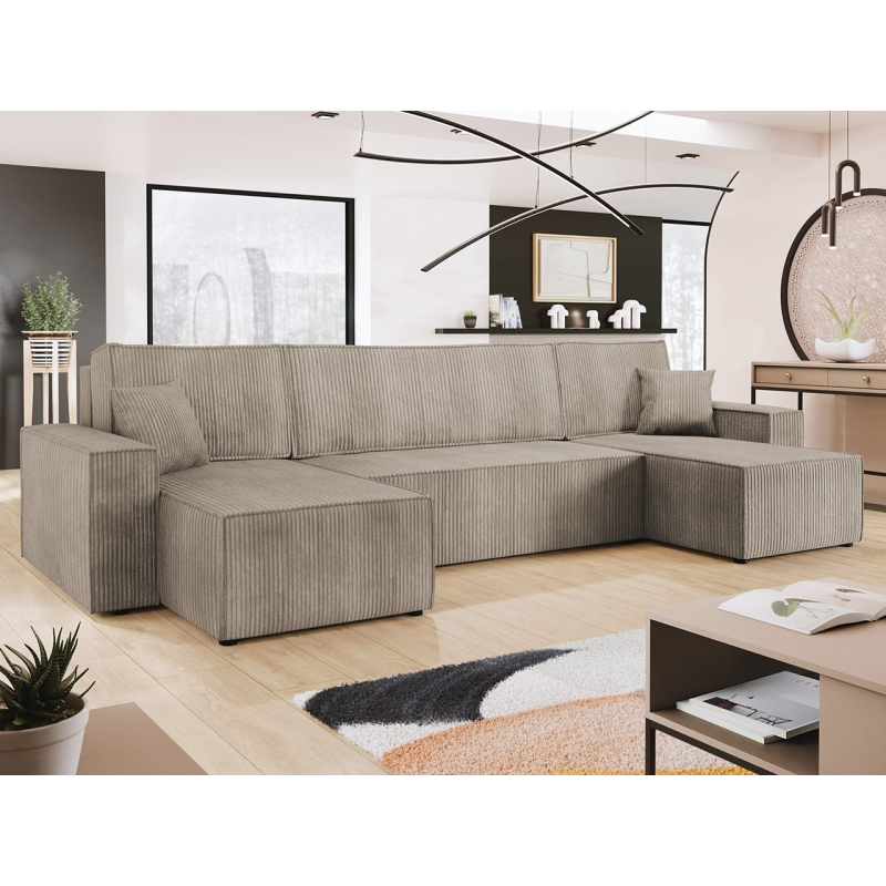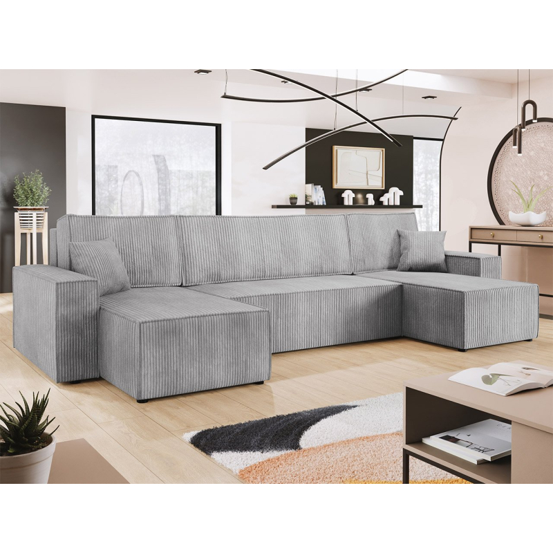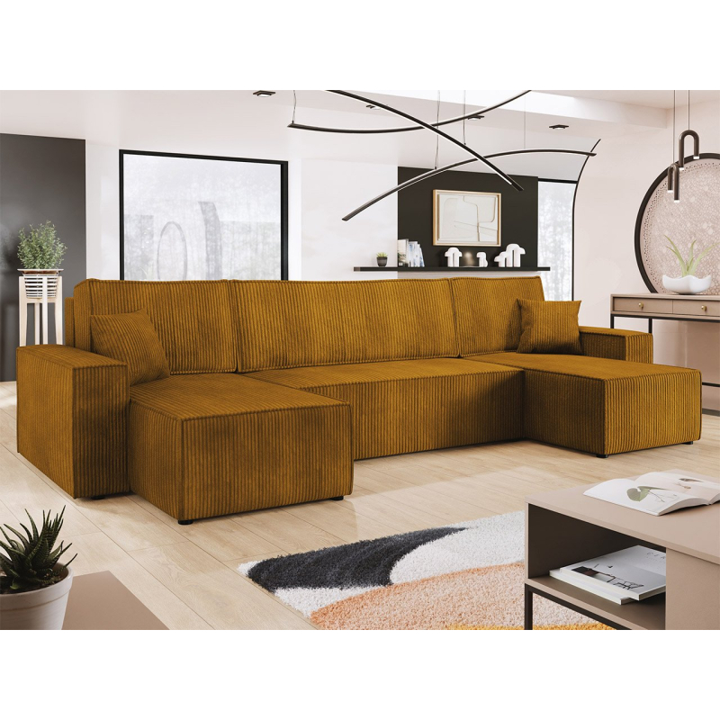 Objevte sílu možností a nádhernou žebrovanou strukturu. Rozkládací pohovka Kasjusz U s funkcí spaní je naším dalším návrhem pro pohodlí během dne i noci. Rozkládací pohovka je skvělou volbou při návštěvě hostů nebo když se obývací pokoj používá také jako ložnice. K dalšímu vybavení patří funkce spaní a kontejner na lůžkoviny. Tento model se dodává také s polštáři, které poskytují vynikající oporu. Prezentovaná varianta je volně stojící typ, který umožňuje libovolné uspořádání prostoru.