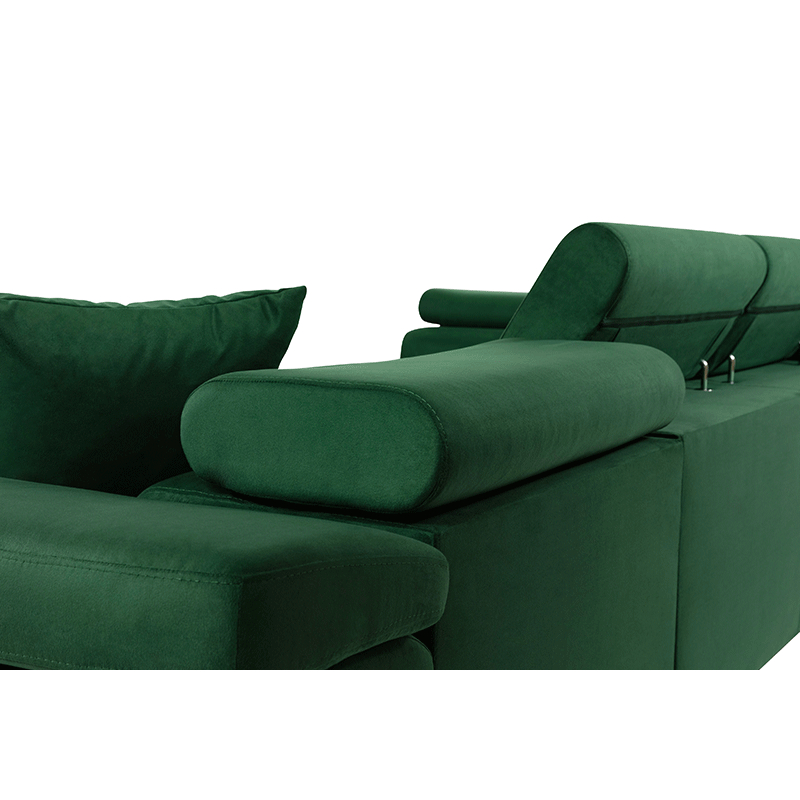 Sedačka je vybavena nastavitelnými opěrkami hlavy a snadno se přizpůsobí vašim potřebám. Je to možné díky několikastupňové úpravě nastavení – díky které si rohovou sedačku dokonale přizpůsobíme našim preferencím a poloze těla. Sezení, ležení nebo sledování seriálu v pololehu – jsme pohodlní v každé situaci.