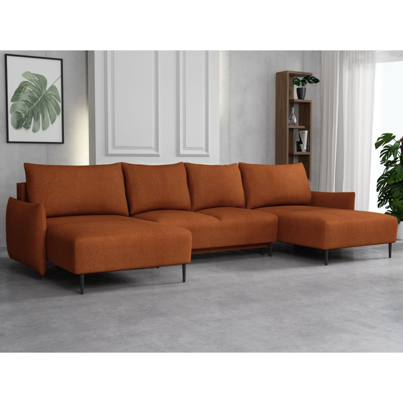 Rohová sedačka ve tvaru U má funkci rozkládání. Díky tomu ji lze využít i jako velkou prostornou postel a další místo na spaní pro hosty. Nábytek navíc nabízí i velký kontejner na lůžkoviny.