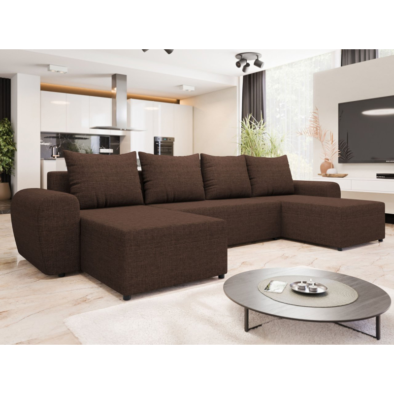 Pohodlí, praktičnost a styl – tyto tři vlastnosti definují rohovou pohovku Anduvo U. Má funkci spánku. Za pár okamžiků se promění v pohodlnou postel.
