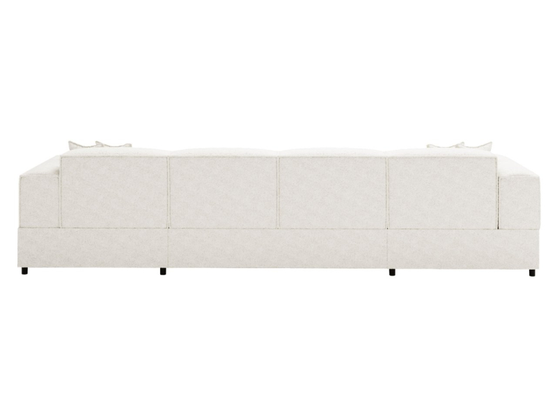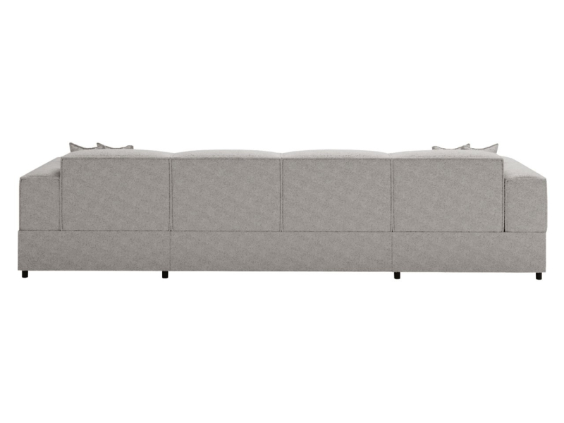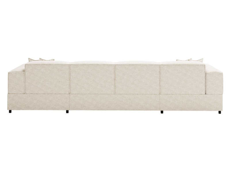Decentní, ale vkusně zdůrazněný tvar rohového gauče se hodí do jakéhokoli interiéru. Geometrický tvar je zdůrazněn lemováním a měkká čalouněná látka přináší teplo a útulnost. Buklé látka má zajímavou texturu. Její uzlovaná a tkaná struktura krásně doplňuje minimalistickou estetiku.