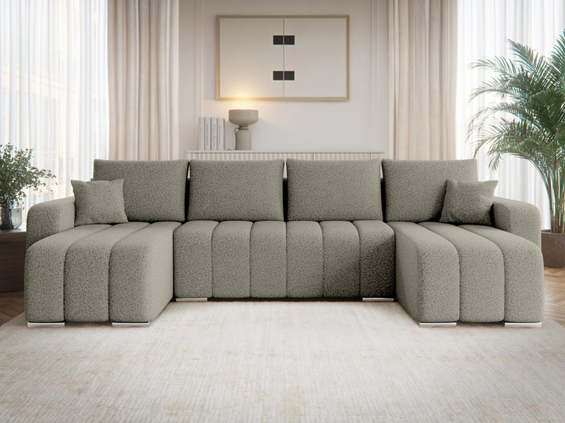 Elegantní rohová sedačka Wiator Boucle ve tvaru U je srdcem obývacího pokoje, určená pro setkání, rozhovory a společný odpočinek. Prostorné sedáky a ergonomická opěradla vás zvou k pohodlnému posezení s celou rodinou nebo přáteli. Je to kus nábytku, který přirozeně spojuje prostor a lidi.