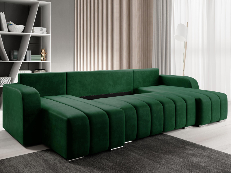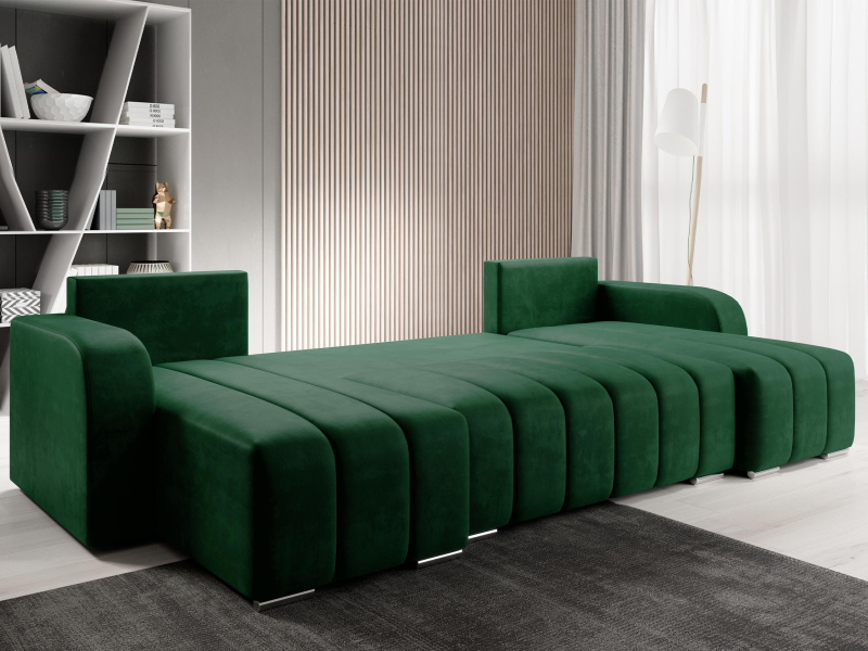 Promyšlený design rohové sedačky nejen zaručuje pohodlí, ale nabízí i praktická řešení: možnost rozložení sedačky na spaní a prostorný úložný prostor na ložní prádlo. Rohová sedačka navržená tímto způsobem je ideální volbou pro velké obývací pokoje a otevřené prostory.