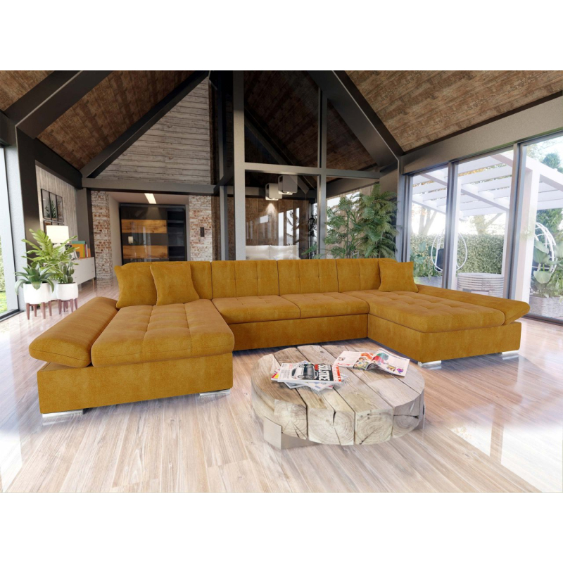 Měkké tvary rohové sedací soupravy jsou nabízeny v pozoruhodných barvách. Široký výběr barev umožňuje snadno podtrhnout kvality vašeho interiéru. Zadní strana čalouněná látkou vám navíc dává možnost umístit nábytek jakkoli - i ve střední části obývacího pokoje bude vypadat velmi dobře. Chromované přední nožky dodávají nábytku jemný půvab a zároveň dodávají uspořádání decentní nádech modernosti.