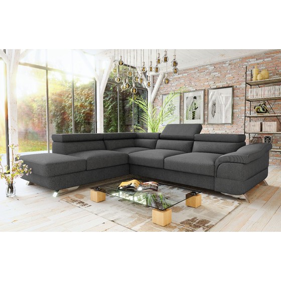 Rohová sedací souprava Matiz je příkladem modernistického nábytku do obývacího pokoje, který má mnoho praktických a automatických funkcí. Nastavitelné opěrky hlavy, úložný prostor na ložní prádlo a rozkládací rohový systém činí jeho používání velmi příjemným. Zadní část rohu je čalouněná látkou, což umožňuje její umístění kdekoli v místnosti. Základem celé konstrukce je stabilní dřevěný rám.