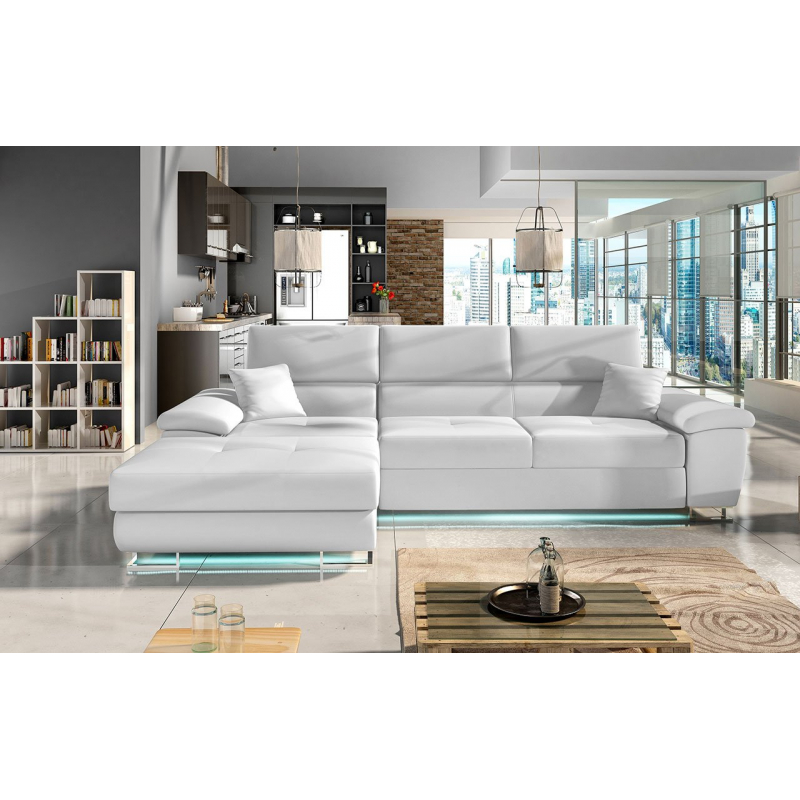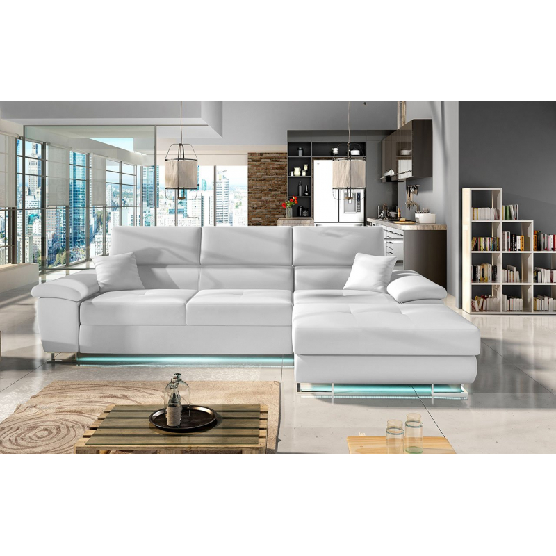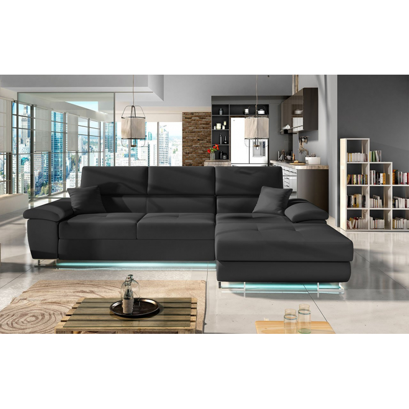 Největší výhodou Alvin Mini LED rohové sedačky jsou jeho pohyblivé čelní stěny a LED osvětlení, které bylo použito ve spodní části nábytku.