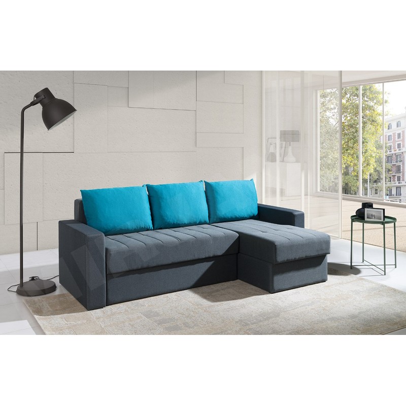 Prezentovaný čalouněný kus nábytku, rozkládací pohovka Mins, je lahůdkou pro ty, kteří hledají pohodlí, všestrannost a funkčnost. Rohová pohovka vděčí za své pohodlí použitým komponentům a opěradlu, které je vybaveno polštáři v kontrastních barvách.