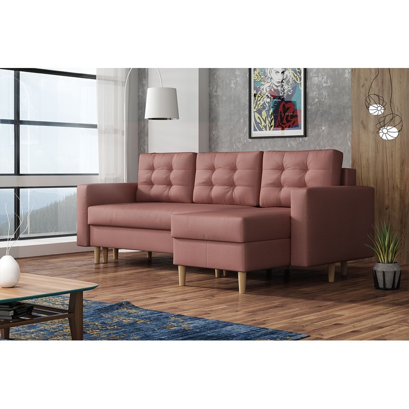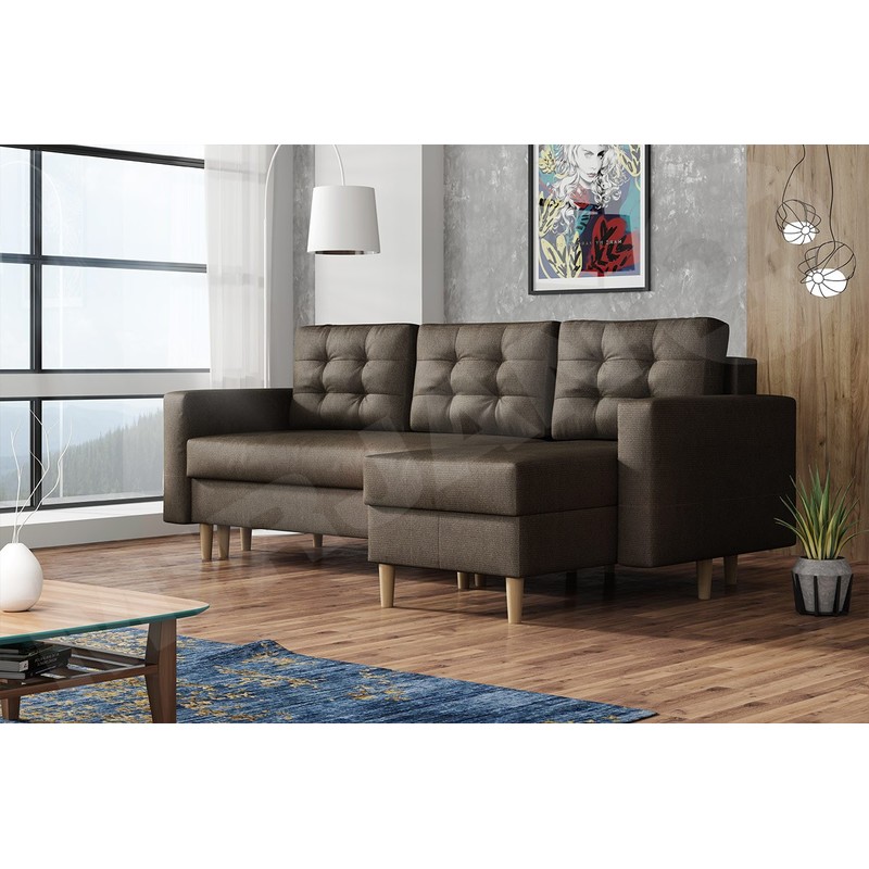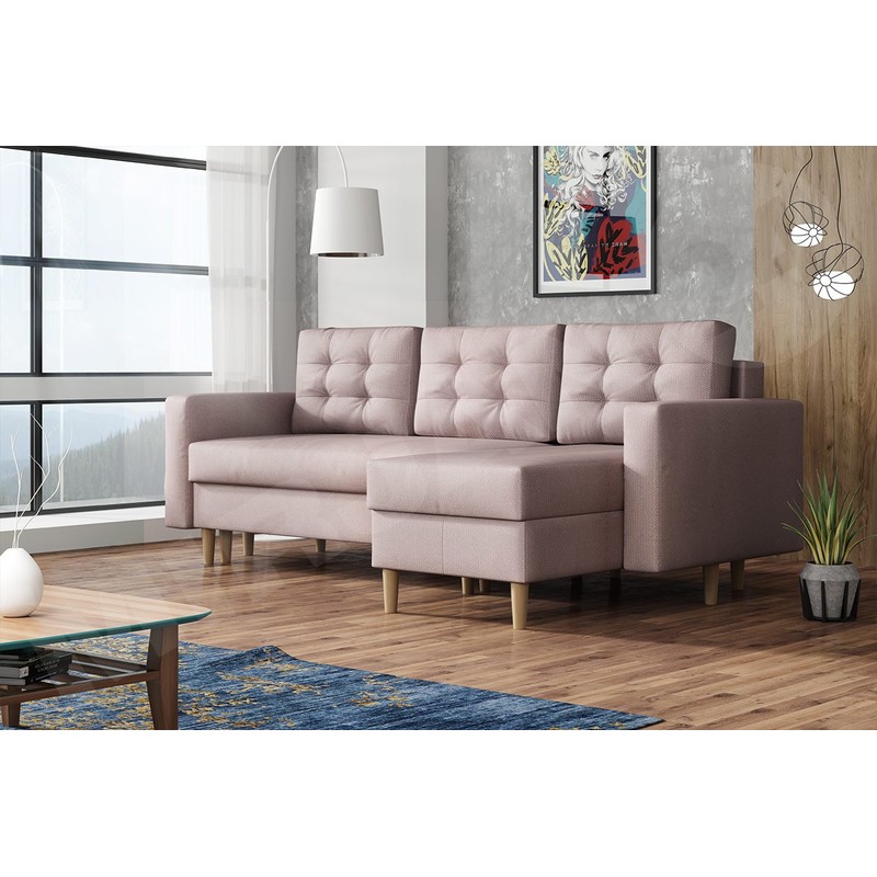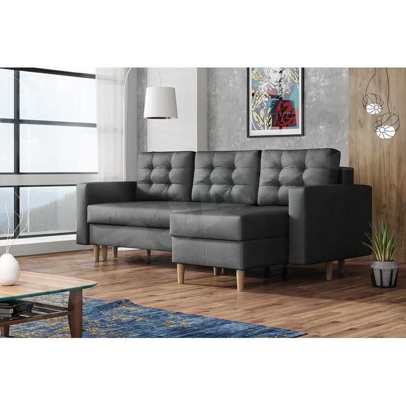 Dalším charakteristickým znakem rohové pohovky na nožičkách je pohodlí, které poskytuje sedák a opěradlo během každodenního používání. Pohyblivé polštáře vám poskytují další možnost přizpůsobit jejich polohu tvaru vaší siluety. Na druhé straně prostorná plocha na spaní v rozloženém stavu poskytne optimální prostor pro odpočinek pro dvě osoby.