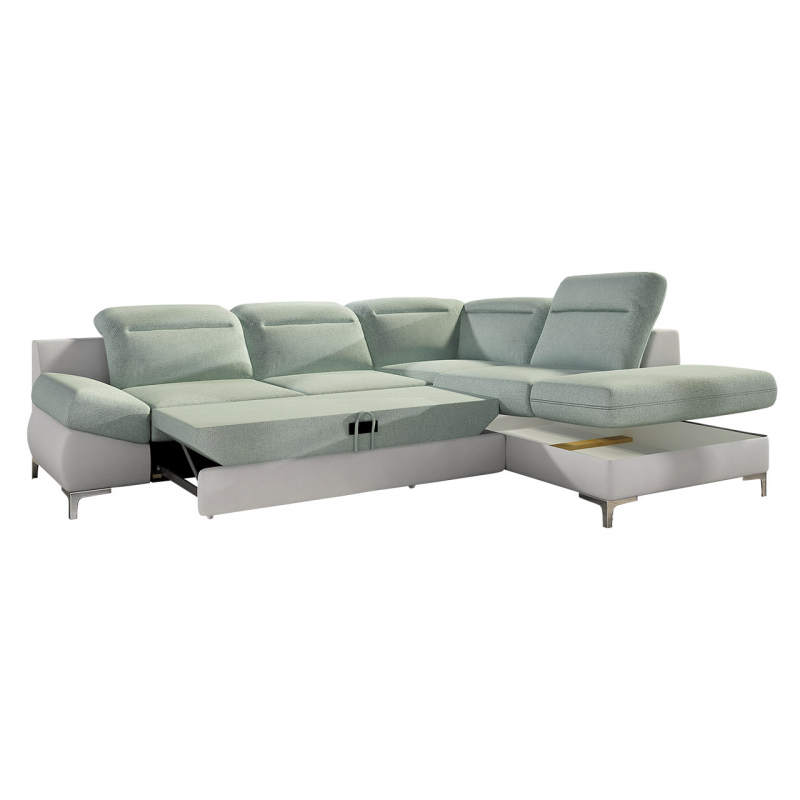 Kromě toho má sedací souprava funkci spaní pro dvě osoby a úložní prostor na ložní prádlo. Je vhodná na každodenní spaní. Další výhodou modelu jsou nastavitelné opěrky hlavy. Díky nim si po náročném dni můžete zcela uvolnit krk.