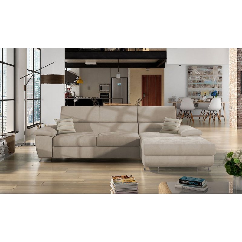 Do popředí se dostává velmi měkké sedadlo konstruované z nejkvalitnějších součástí. Kromě toho má rohová sedací souprava ve tvaru písmene L nastavitelné opěrky hlavy - pro výběr optimálního nastavení stačí jen mírně vytáhnout rukou nahoru. Vysoký komfort při sezení podporují také přiložené polštáře.
