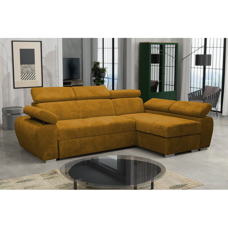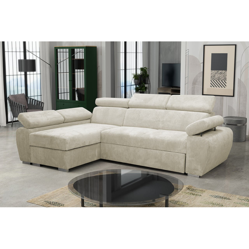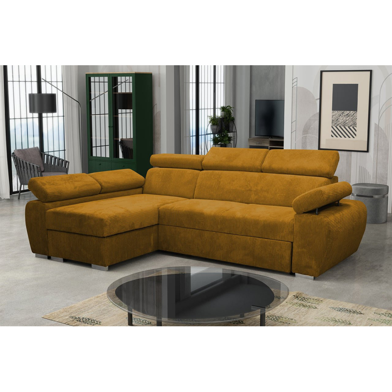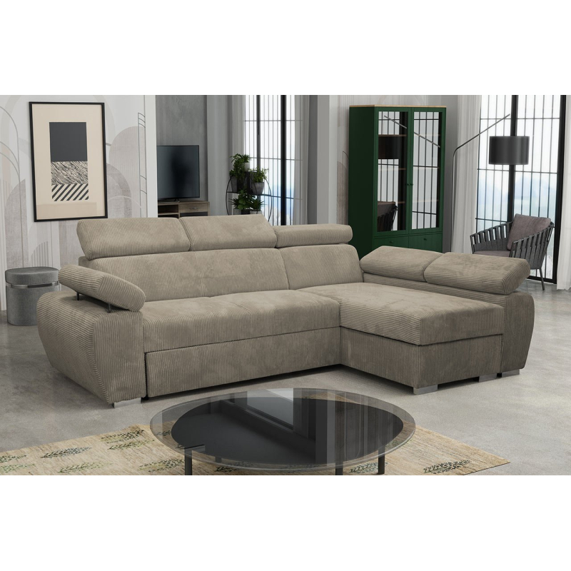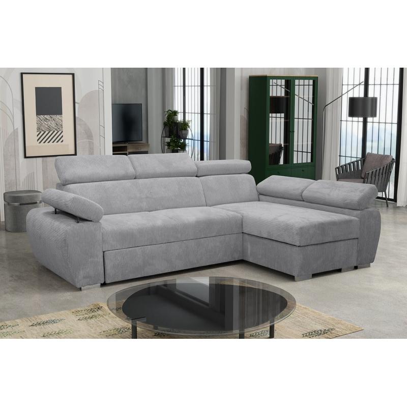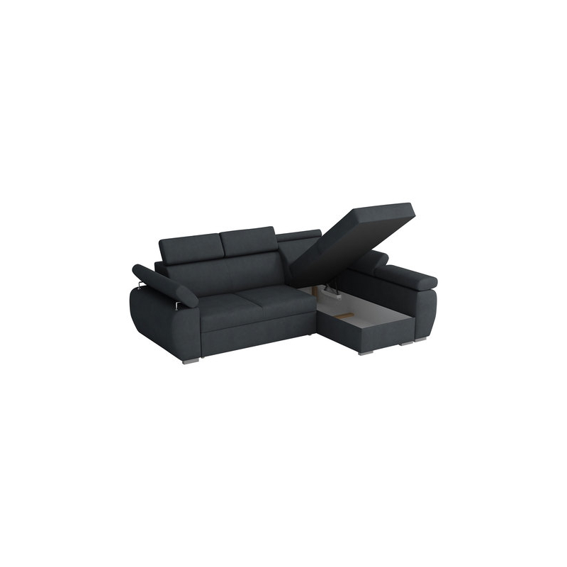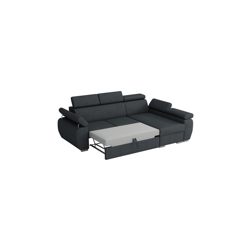 Kromě vizuálních kvalit nabízí Giza Mini také zvýšenou funkčnost. Nábytek vybavený nastavitelnými opěrkami hlavy poskytuje pohodlné podmínky pro odpočinek pro celou rodinu. Kromě toho tato moderní rohová pohovka nabízí také funkci spaní a pod jedním ze sedadel se nachází prostorný úložný prostor na lůžkoviny.