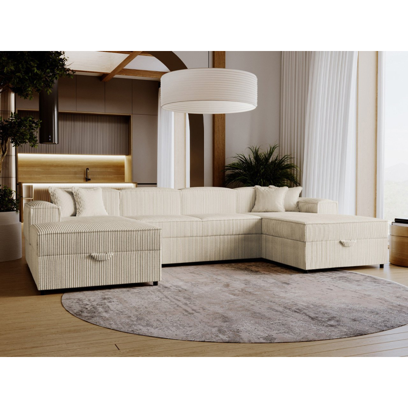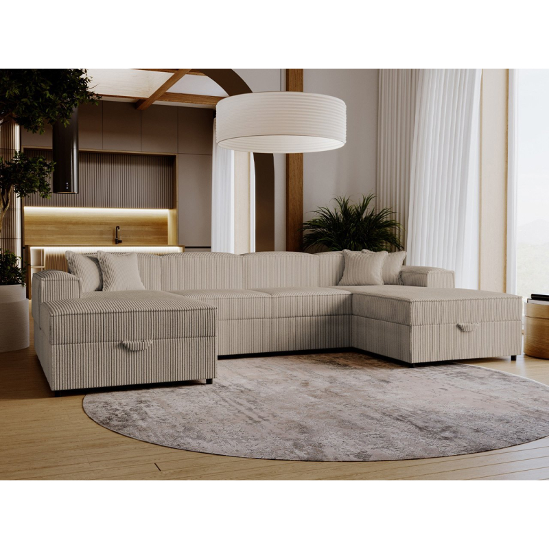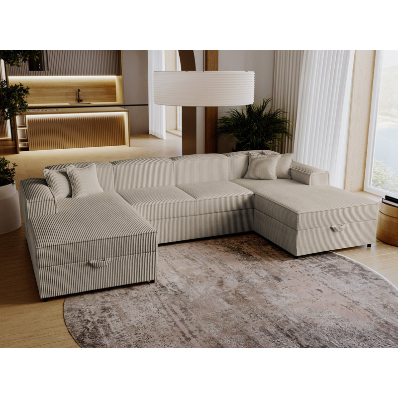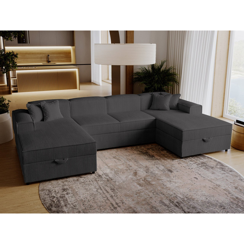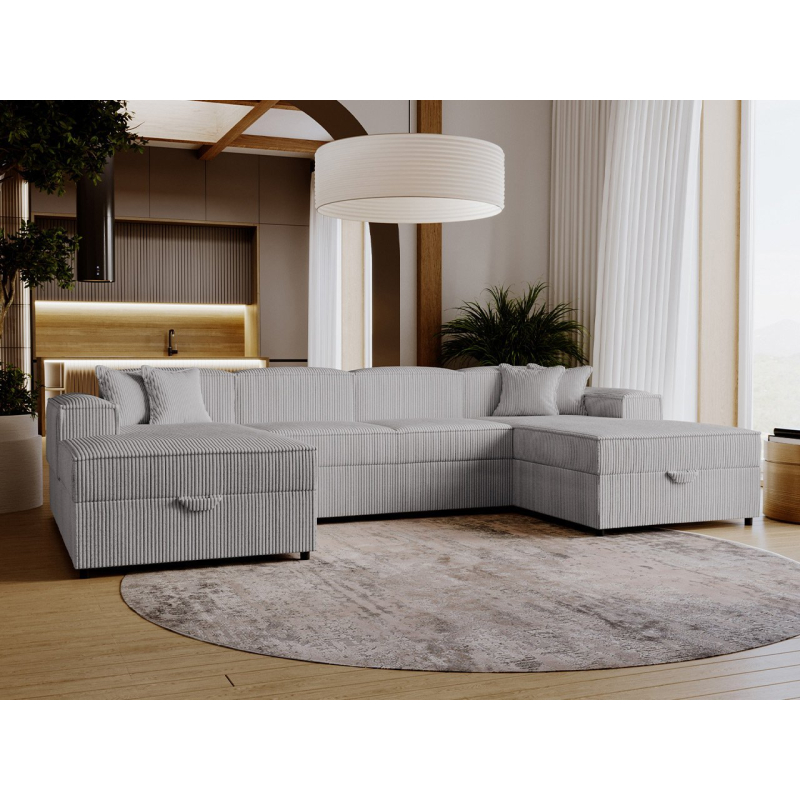 Módní design v kombinaci s mimořádným komfortem a funkčností. To je rozkládací rohová sedací souprava Sokoz U. Do dvou prostorných úložných prostorů na lůžkoviny se vejde další peřina, polštáře a další doplňky. Měkký manšestrový materiál zaručuje mimořádnou útulnost a pohodlí při používání.