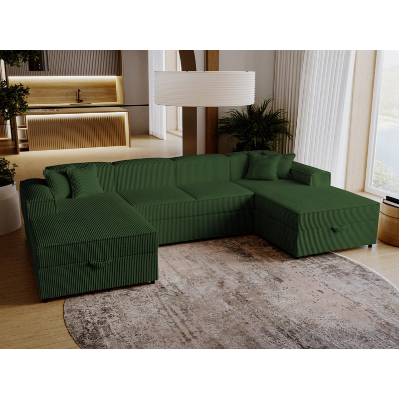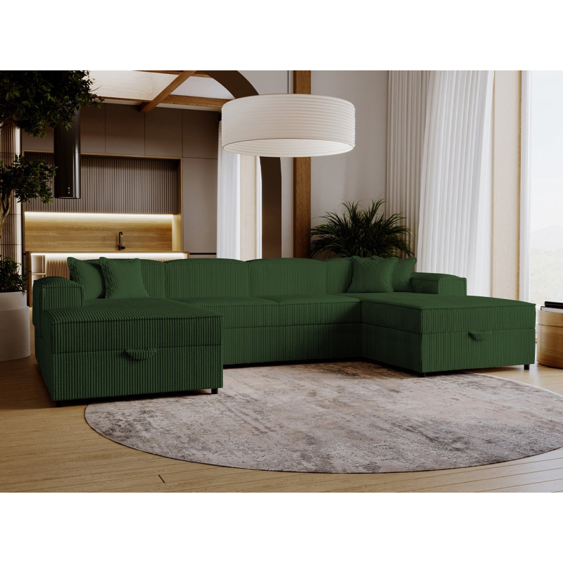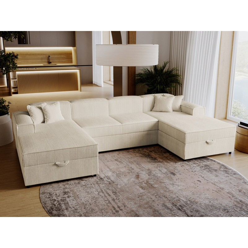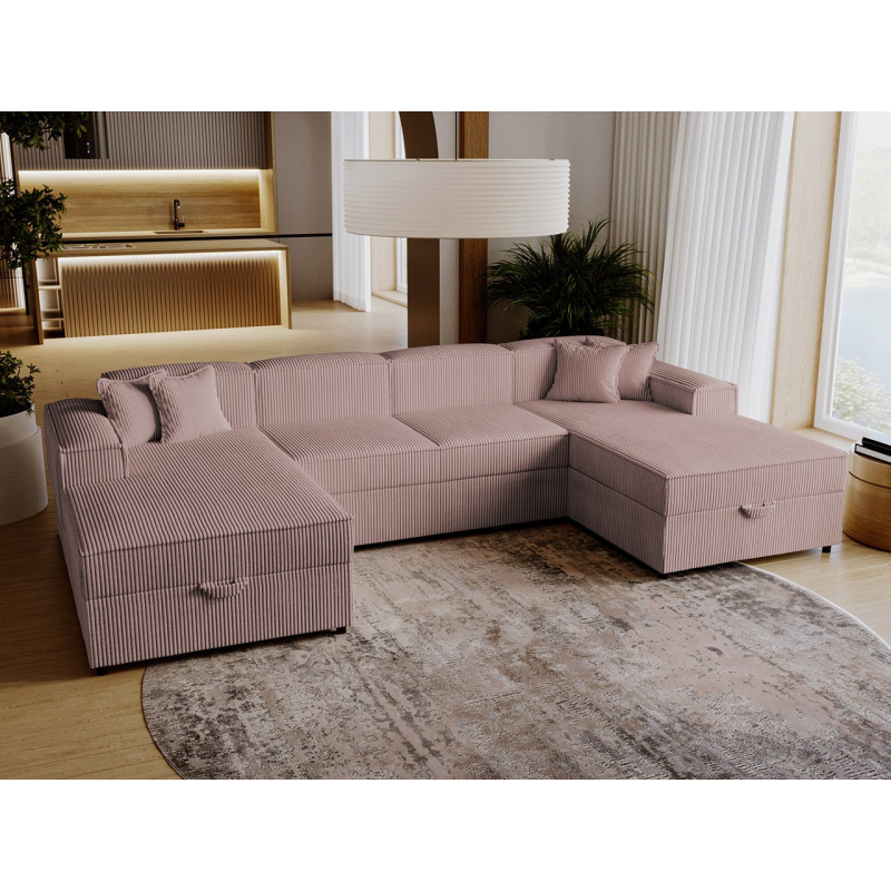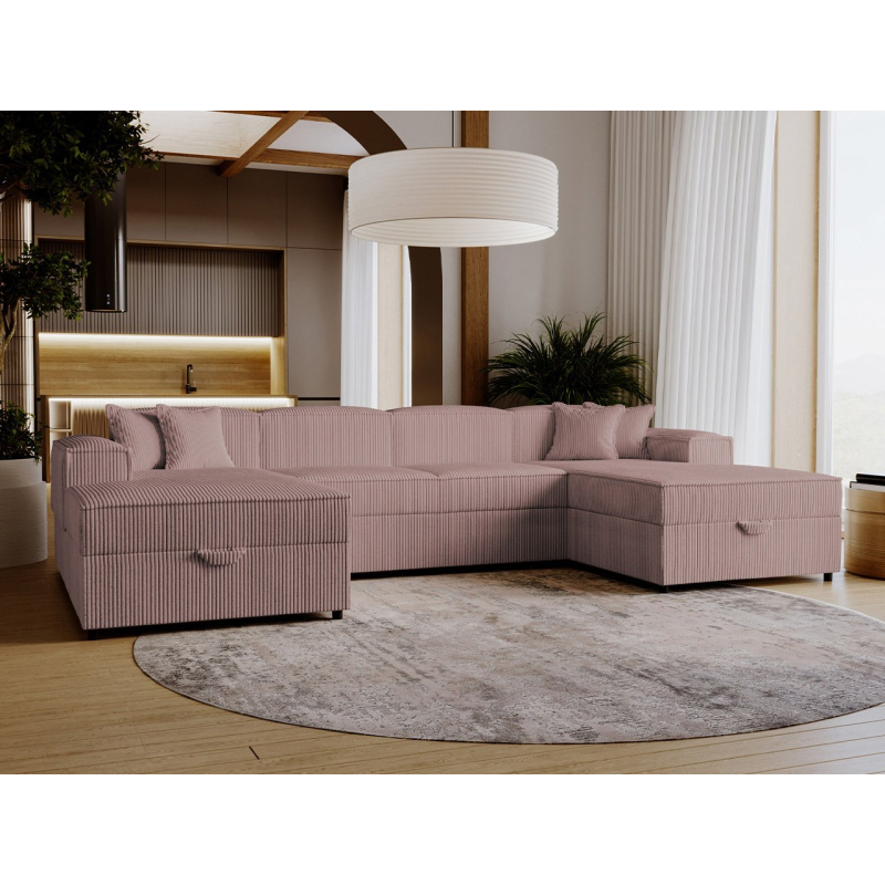 Módní design v kombinaci s mimořádným komfortem a funkčností. To je rozkládací rohová sedací souprava Sokoz U. Do dvou prostorných úložných prostorů na lůžkoviny se vejde další peřina, polštáře a další doplňky. Měkký manšestrový materiál zaručuje mimořádnou útulnost a pohodlí při používání.