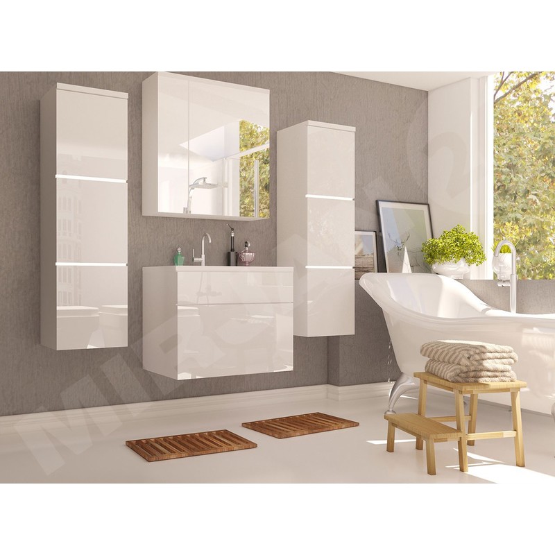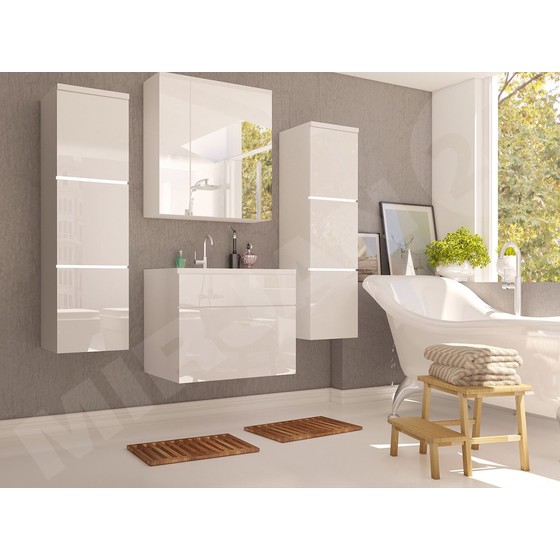 Koupelnový nábytek Mandy je funkčním vybavením moderní koupelny. Elegantní a efektivní vzhled a prostorné police zaručují spokojenost s používáním.