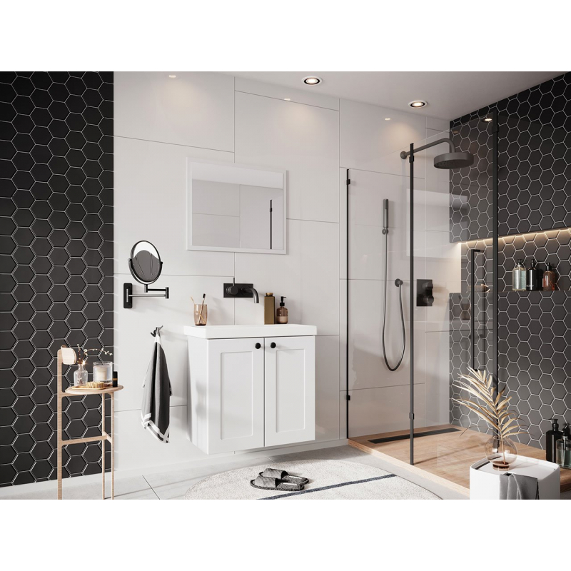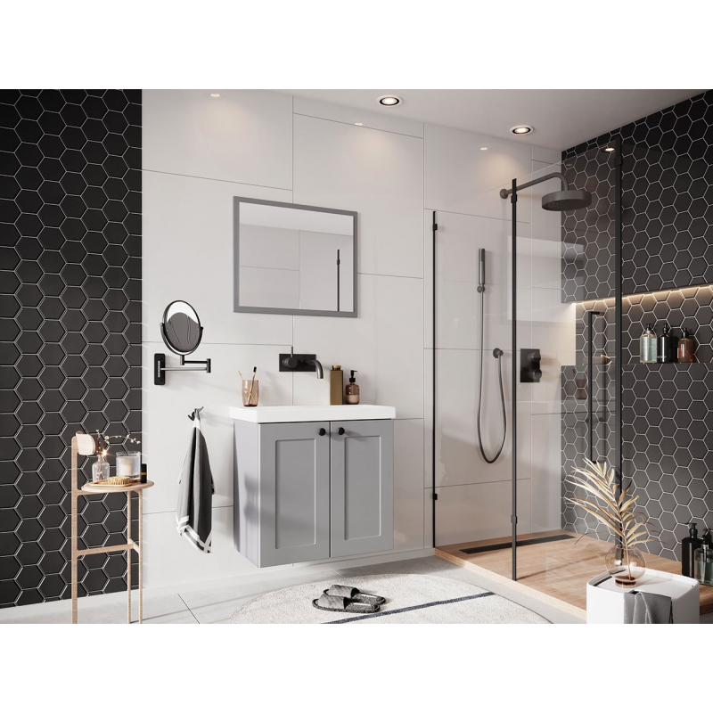 Druhým prvkem sady je závěsné zrcadlo, které je zavěšeno na panelu v barvě skříně. Zrcadlo je 60 cm široké a 50 cm vysoké.