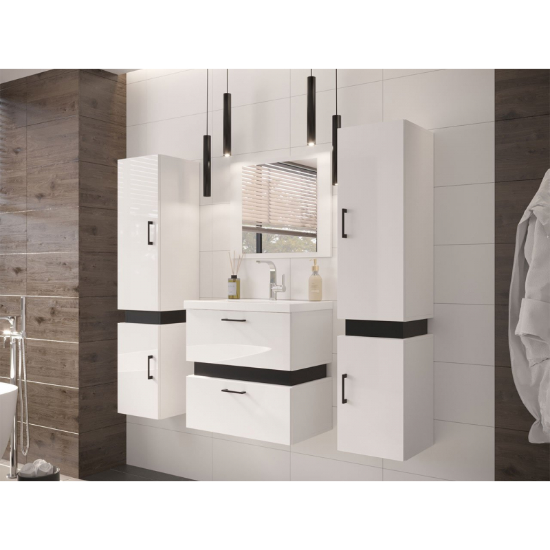 Koupelnový nábytek Torvaldi II se vyznačuje pečlivým zpracováním a moderním vzhledem. Díky nim si vytvoříte stylovou a praktickou koupelnu. Díky oblíbeným barvám a funkčnímu závěsnému systému zůstane nábytek v módě po dlouhou dobu. Koupelnový nábytek Torvaldi II má dostatek prostoru pro odkládání ručníků, kosmetiky a čistících prostředků. K nábytku patří skříňka s umyvadlem, dvě šatní skříňky a zrcadlo, které celek dotváří. Jako doplňkovou možnost lze dokoupit sifon a umyvadlovou baterii, díky kterým si vytvoříte sestavu, která změní vaši koupelnu.