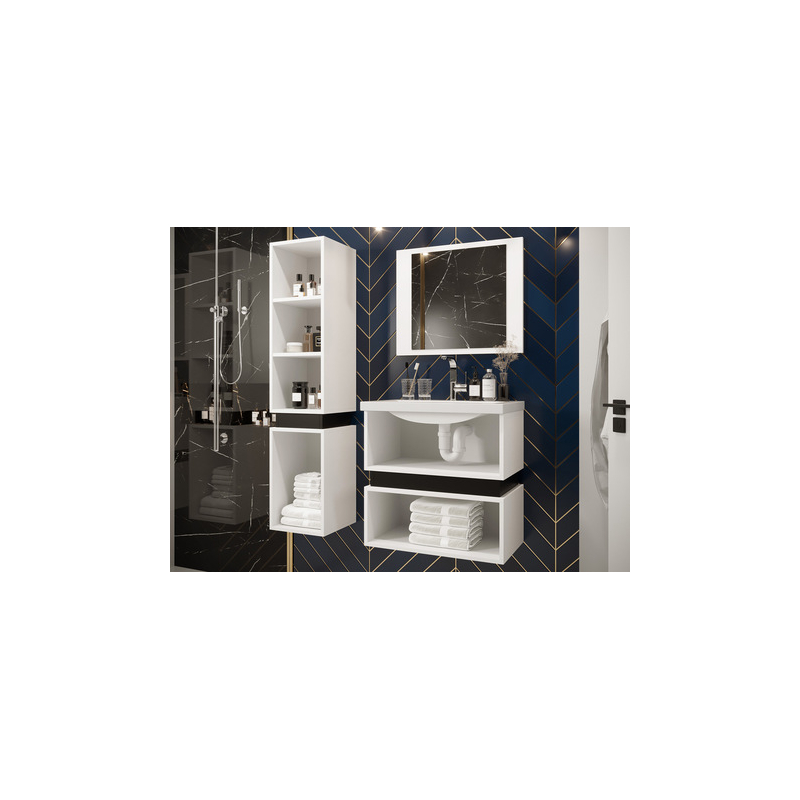 Koupelnový nábytek Syliko IV je kombinací nejužitečnějších prvků. Základem je zde závěsná umyvadlová skříňka. Pyšní se prostorným úložným prostorem a poskytuje praktický úložný prostor pro kosmetiku a pečovatelské potřeby.