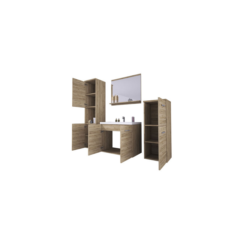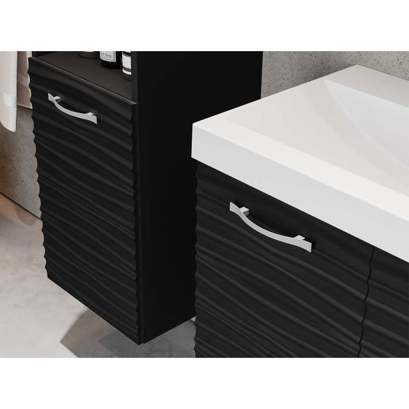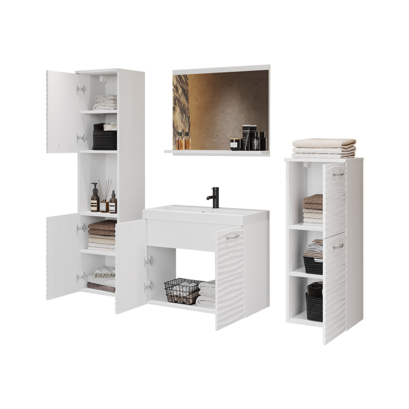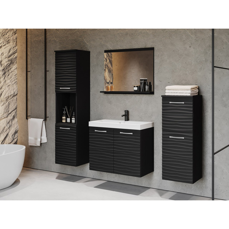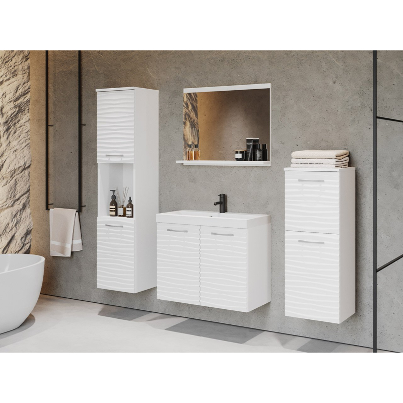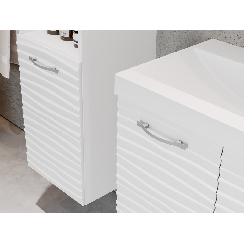 Praktická a především designová sestava koupelnového nábytku Megi I MDF se dobře uplatní v malých i velkých koupelnách. Kombinace skříněk s umyvadlovou skříňkou poskytuje spoustu úložného prostoru. Každý šuplík nabízí prostorný vnitřní prostor, kde si můžete libovolně uspořádat kosmetiku, pečující doplňky a čistící prostředky.