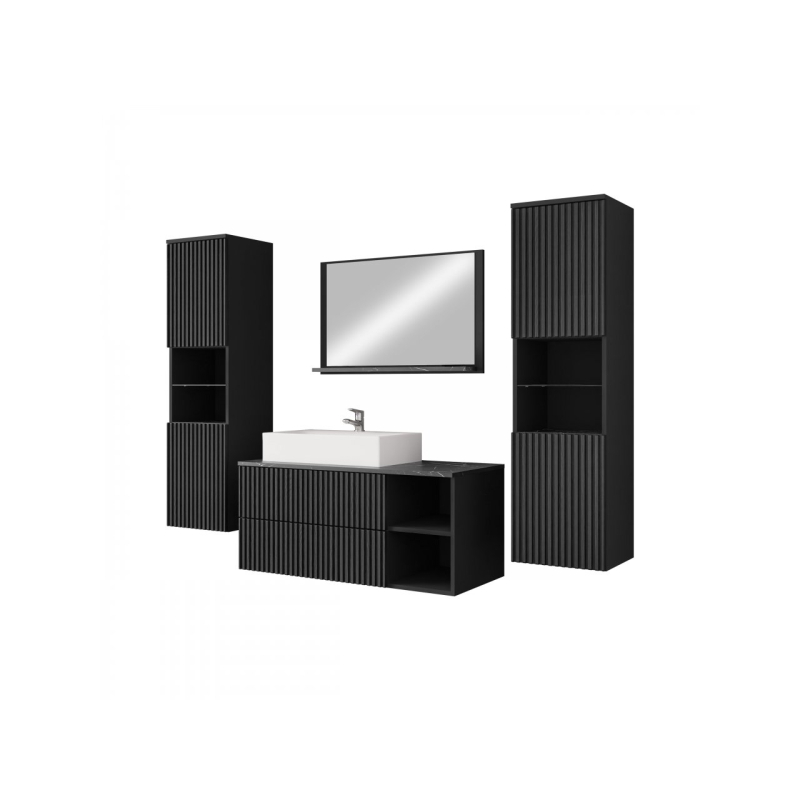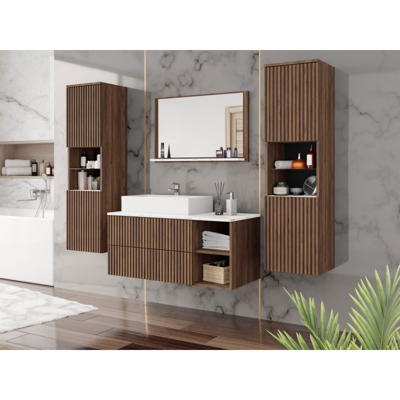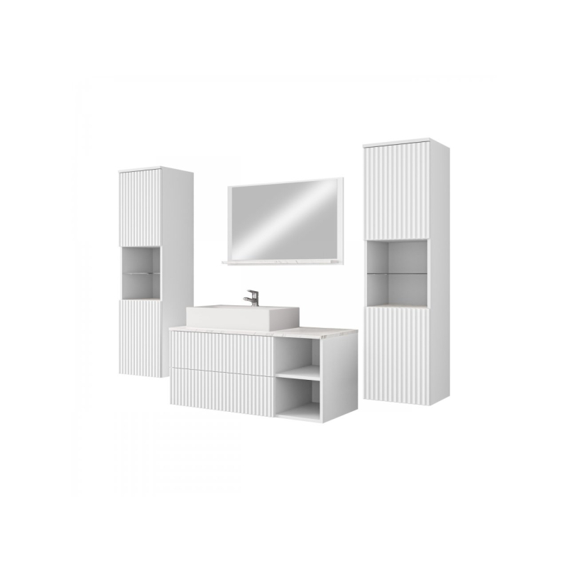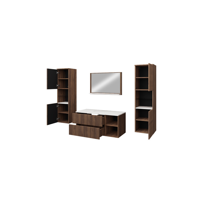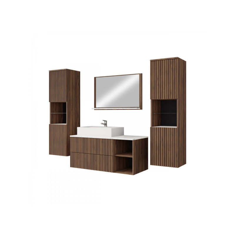 Mezi výhody velké sestavy koupelnového nábytku Kiegi Ryfel III patří: funkčnost. Souprava je navržena tak, aby poskytovala co nejvíce úložného prostoru a nabízí řadu přihrádek. Do závěsných skříněk uspořádáte větší kosmetiku, prací prášky a tekutiny, dostatek místa je také na ručníky a chemii v domácnosti. Nechte zase skříňku pod umyvadlo, aby se stala praktickým místem pro často používané doplňky.