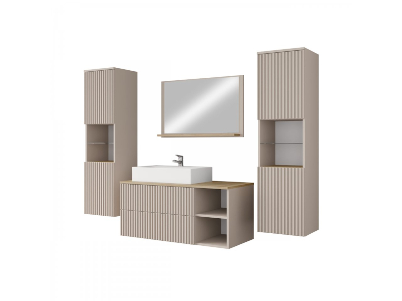 Pozvěte drážky do vaší koupelny! Sestava Kiegi Ryfel III zvýrazní elegantní a především přívětivý vzhled interiéru. Symetrické drážky, které zdobí čela, dodají charakteristický vzhled celé místnosti. Dodávají nádech modernosti a především zatraktivňují celé aranžmá.