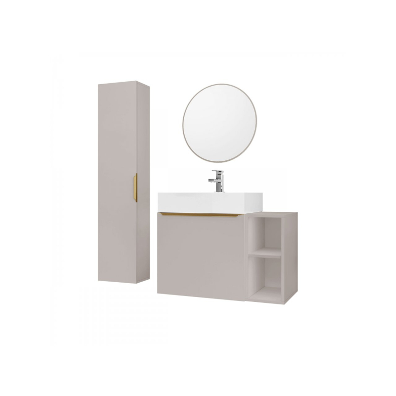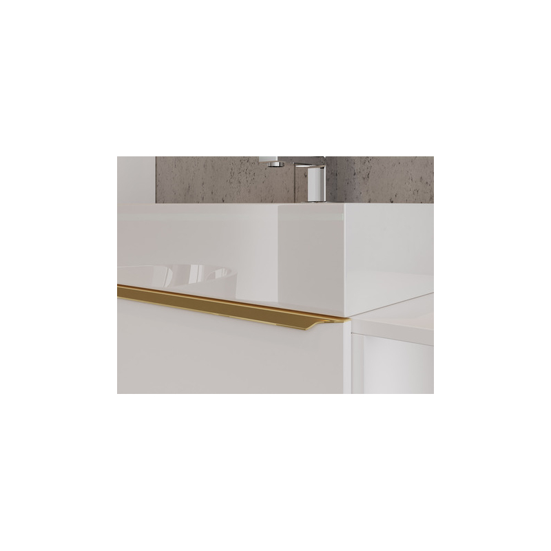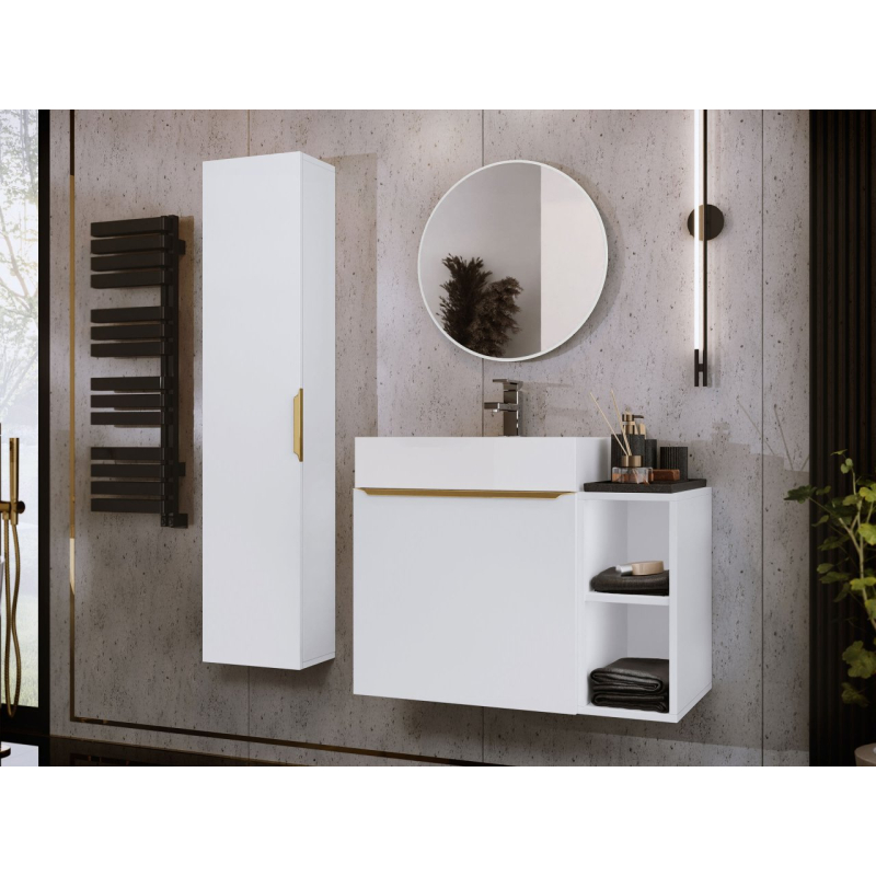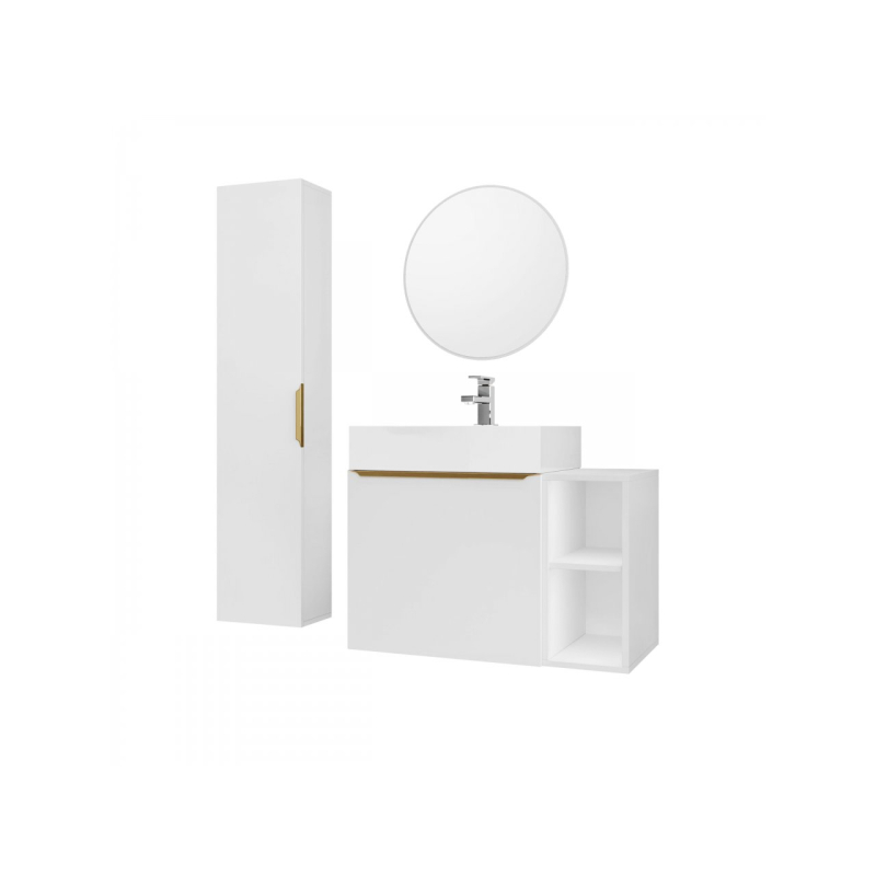 Setorio je závěsný koupelnový nábytek, který bude vypadat skvěle i v malém prostoru. Zářivé barvy a zlaté doplňky dodají každému interiéru luxusní charakter. Sestava obsahuje umyvadlovou skříňku, závěsnou skříňku a zrcadlo. Za příplatek je k dispozici také umyvadlo a sifon.
