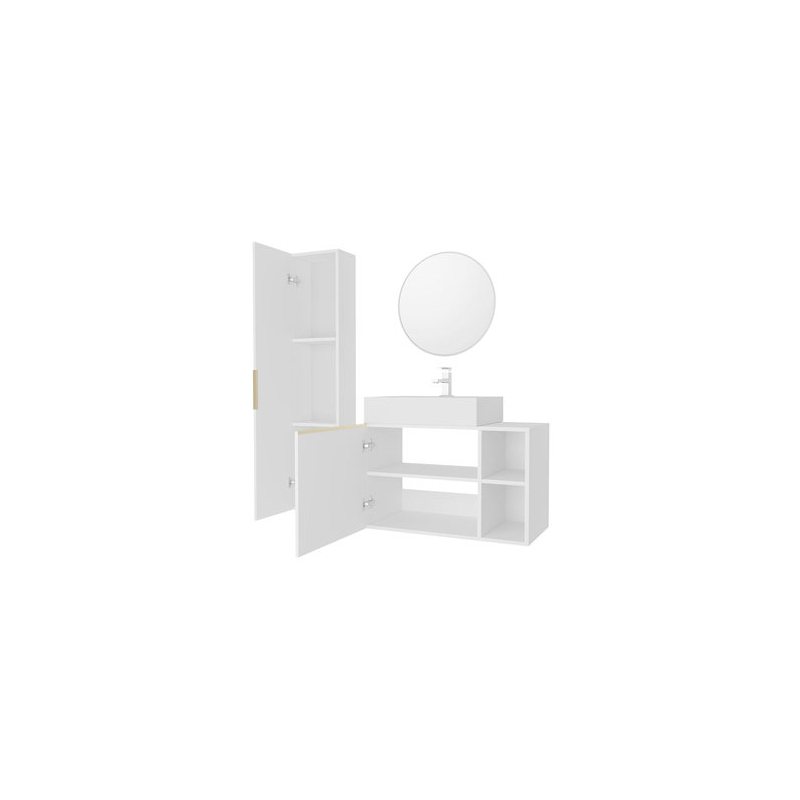 Navrhněte praktický prostor pro každodenní péči. Koupelnový nábytek Setorio I je spojením několika praktických prvků. Souprava nabízí dostatek prostoru pro uložení kosmetiky, ručníků a čistících prostředků. Součástí sady je také praktické zrcadlo.