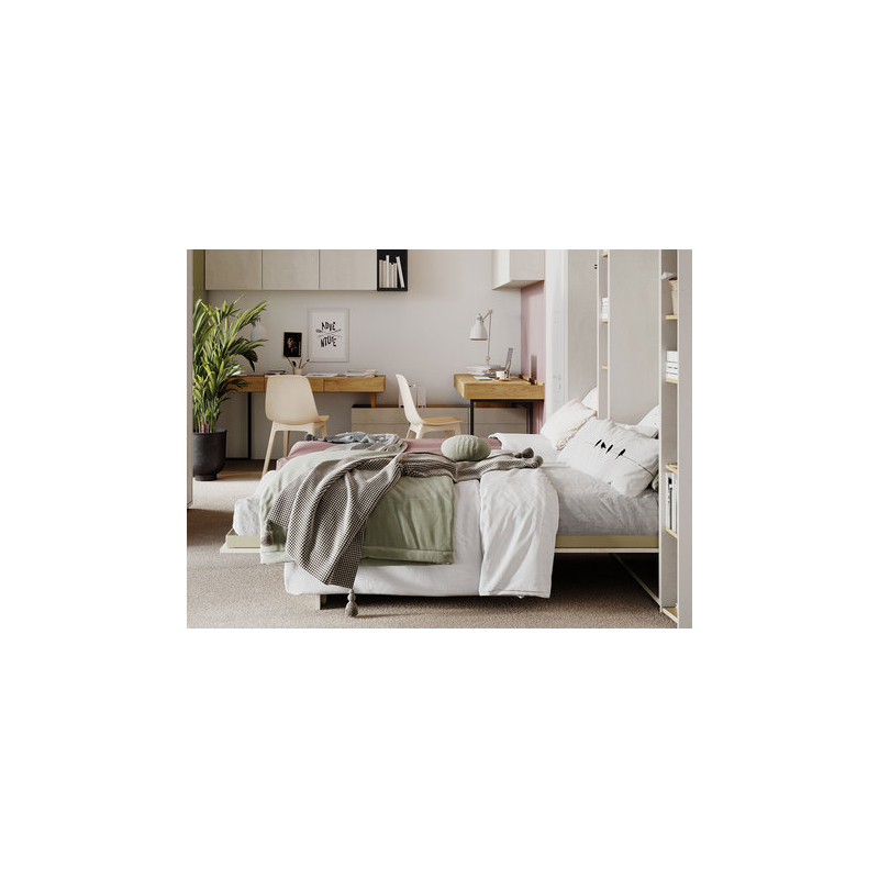 Díky pneumatickým zdvihačům je otevírání a zavírání postele plynulé a bezpečné, bez rizika náhlého pohybu. systém jemného zavírání zajišťuje tiché a nehlučné zavírání, což znamená, že se nemusíte obávat náhodného hluku nebo poškození. Nábytek je vybaven praktickými podpůrnými popruhy, které udrží ložní prádlo na místě. Je to pohodlné řešení, díky kterému zůstanou věci uklizené a čisté.