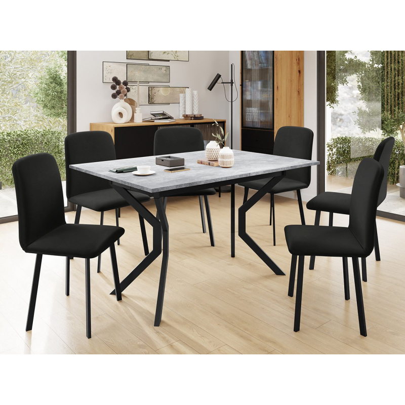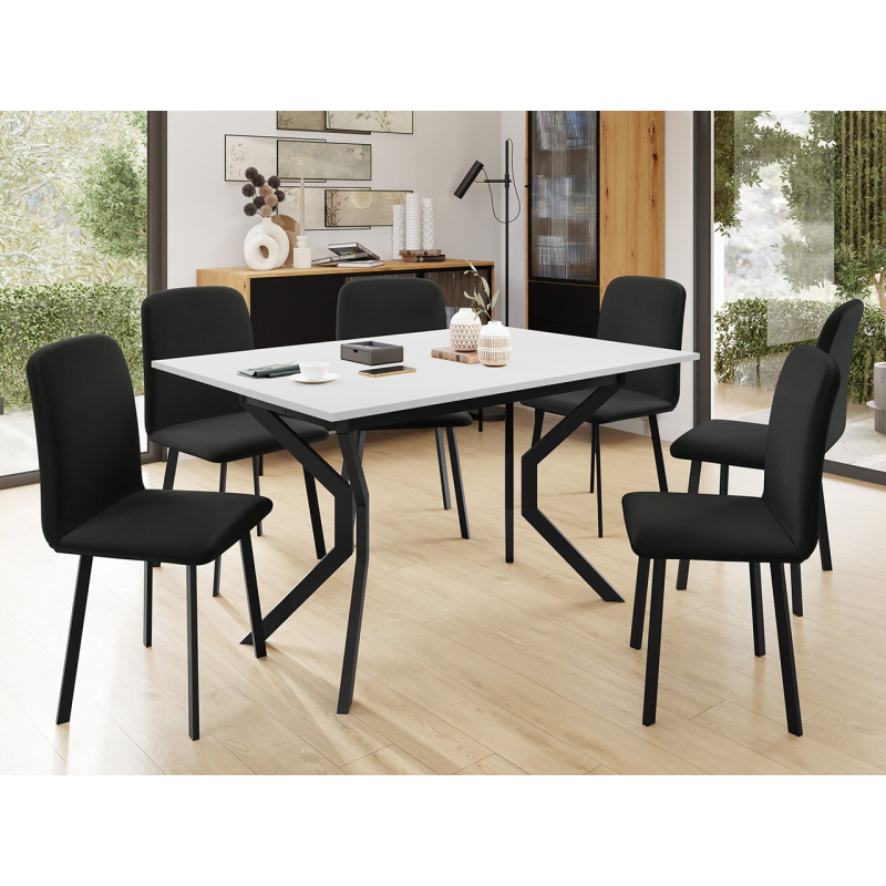 Díky synchronnímu vedení je změna velikosti desky stolu rychlá a snadná. Jídelní stůl zaujme moderním designem a zaujme praktickým přístupem ke každodennímu používání. Pevná konstrukce zajišťuje odolnost a kovové detaily mu dodávají syrový charakter. V kombinaci s módními barvami se nábytek stane jedinečnou ozdobou vašeho interiéru.